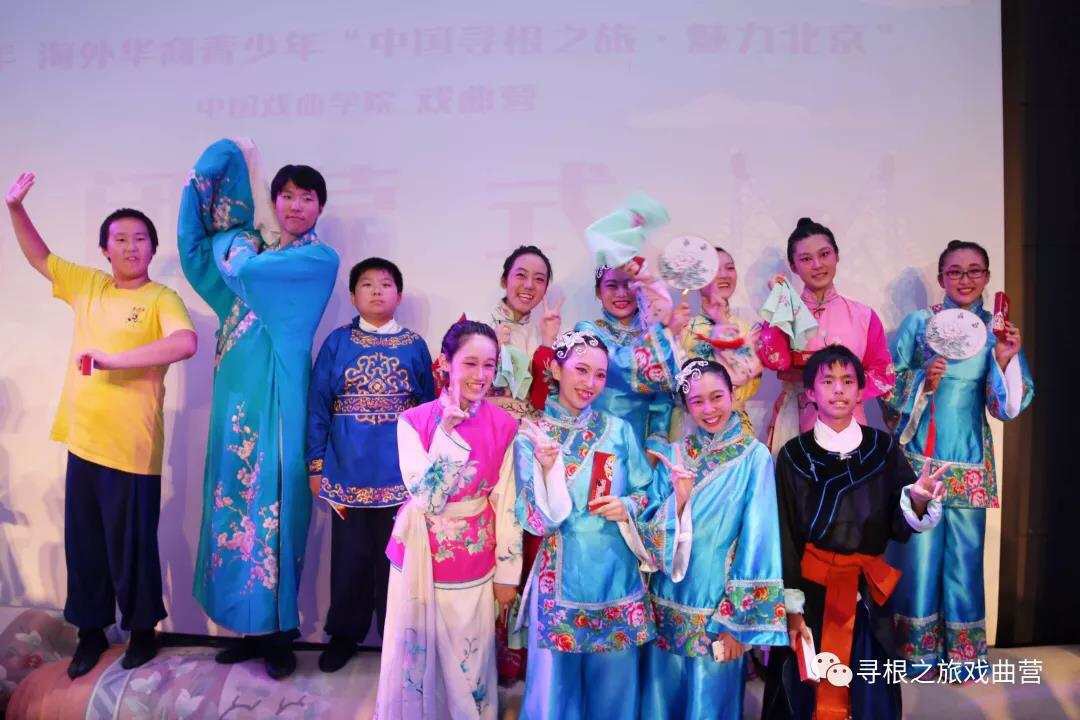 2018年“中国寻根之旅.魅力北京”之系列十六:汇报演出大获成功! 首先,大家一起观看了2018年戏曲营视频回顾,在短片之中,15天戏曲营的生活里的快乐与感动、辛苦与坚持浮现在大家的眼前,初见仿佛就在昨日,都在不知不觉之中过去了,看着视频中的大家的身影,每个人都百感交集。徐超书记表示请营员们能够永远记住,他们在中国有一位朋友、有一个家,那就是——中国戏曲学院!同源中文学校的苏畅作为营员代表发言。她对主办方及所有老师、志愿者表示感谢。苏畅说到,“台上一分钟,台下十年功”,此次汇报演出凝聚了老师们的心血和营员们的汗水,她由此感受到了戏曲演员的不易以及戏曲艺术的魅力。在城市文化体验中,他们了解了更多中国的历史;在传统文化体验课上,他们感受到了中华文化的博大精深;在与志愿者的接触中,她感受到了植根于中华民族精神中的奉献与友善。本次戏曲营,让他们深深铭记自己是炎黄子孙,他们的根在中国。最后,在场的观众们一起欣赏了营员们带来的京剧女生戏曲元素组合、男生《锦绣梨园》、京剧《卖水》片段、领队舞蹈《绒花》、女生折扇团扇《凤穿牡丹》、男生《梨园春色》。小营员们的精彩演出,得到了老师们和家长们的一致肯定和赞扬。至此,“中国寻根之旅·魅力北京”戏曲营闭营仪式圆满结束。在戏曲营期间,小营员们不仅收获了珍贵的友谊,更加深了对戏曲文化、传统文化的了解。希望在今后,大家都会带着一个共同的身份——炎黄子孙,一起为中华民族文化的传承与弘扬奉献自己的一份力量。