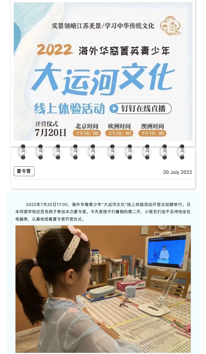 ●大运河文化夏令营线上开营式,同源学校百名营员参加