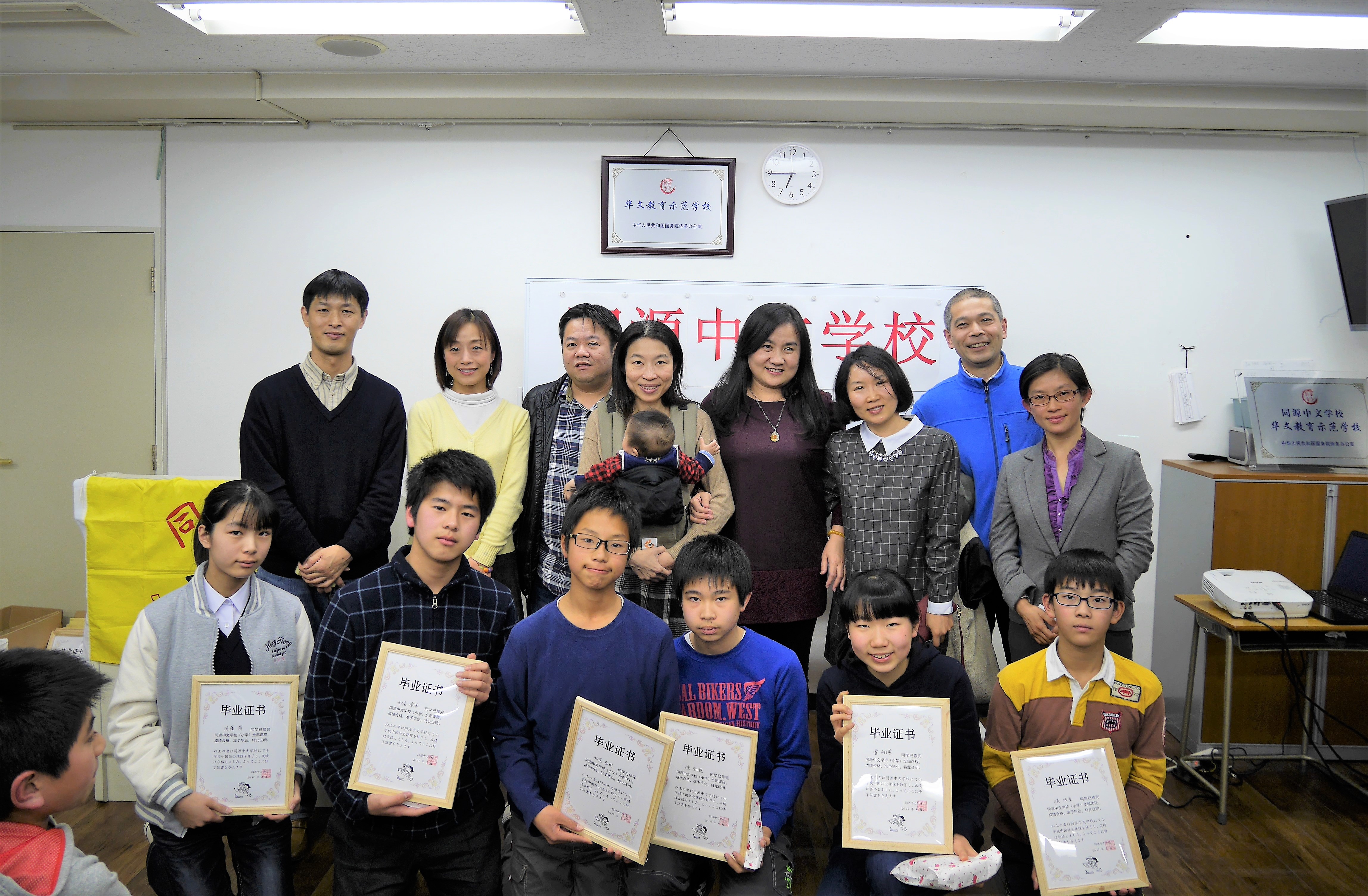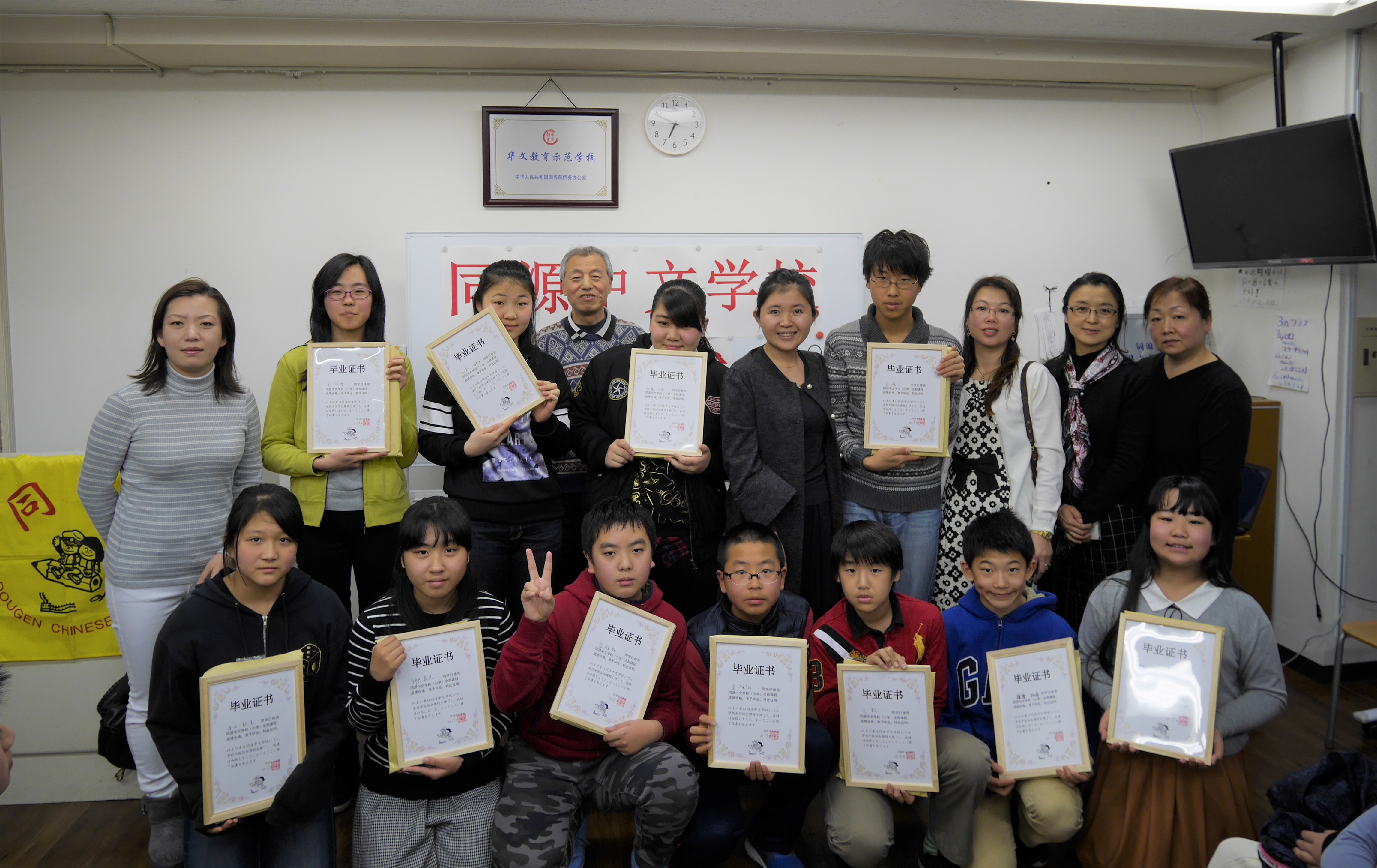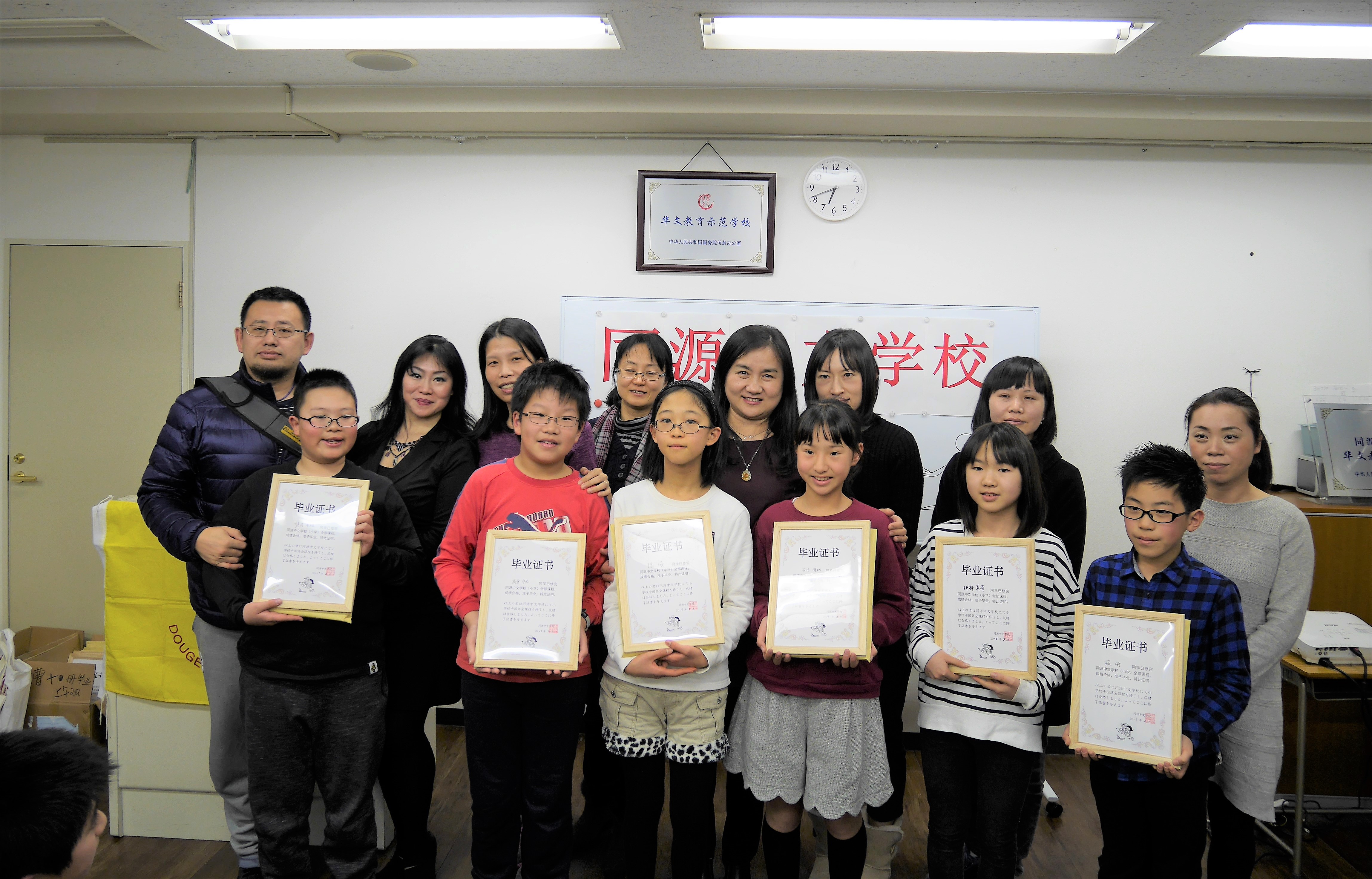 2017年2月26日下午五点半,同源中文学校举办了首次全校毕业典礼。池袋、町田、蕨、府中四个分校2016年度毕业的中小学生共58人,近百名毕业生、老师们家长出席了此次毕业典礼。大家欢聚一堂,共同见证孩子们的成长。