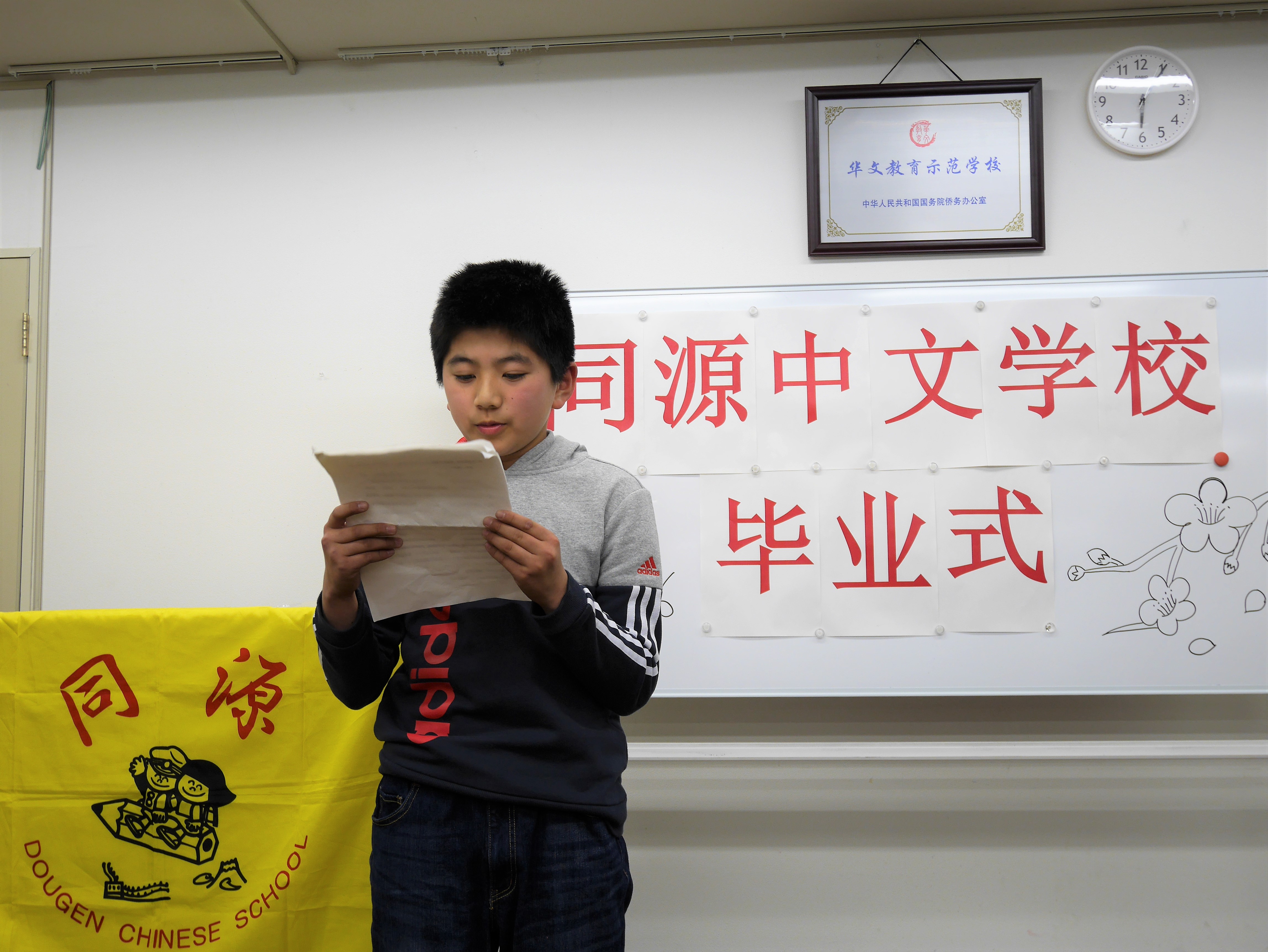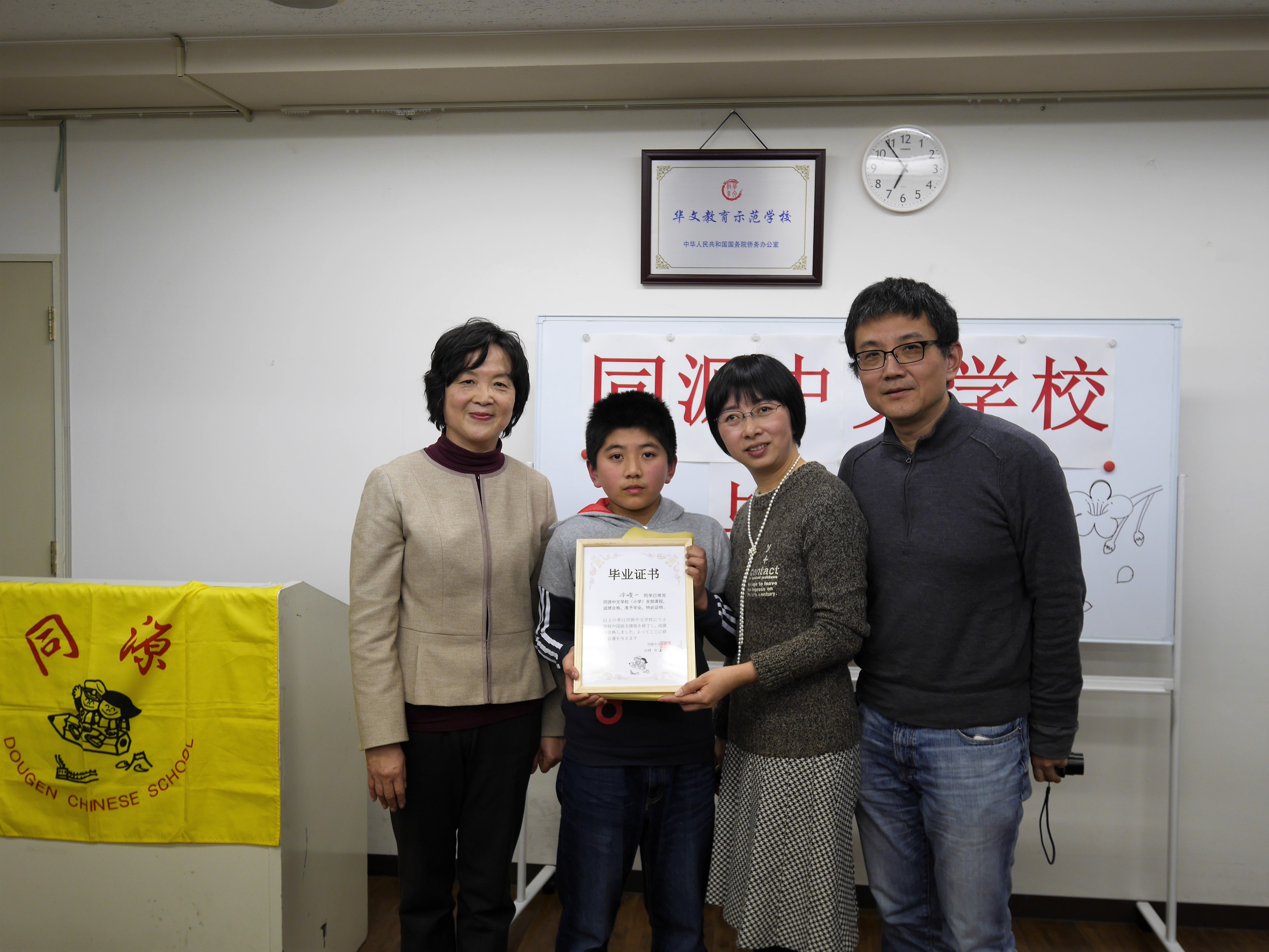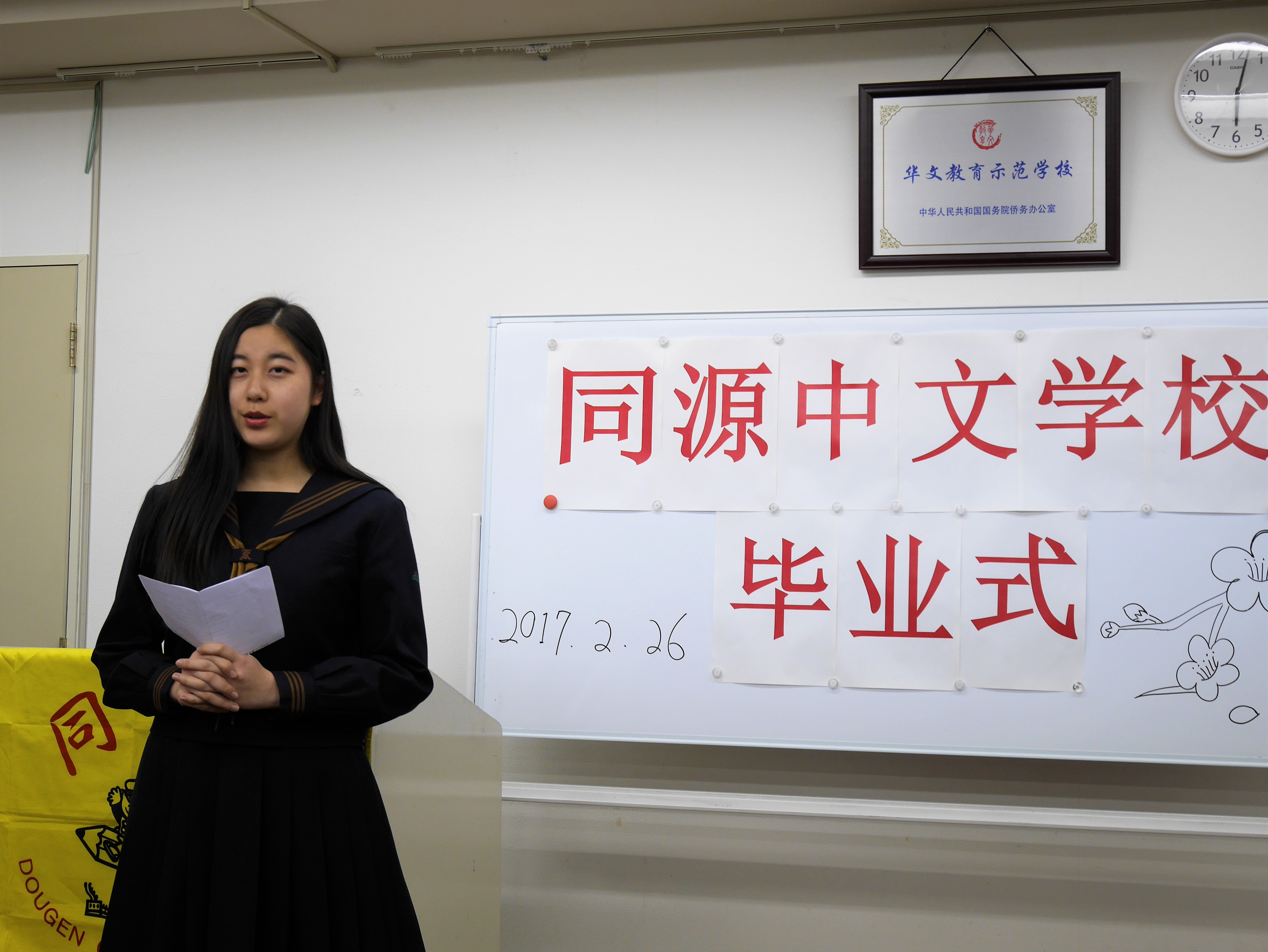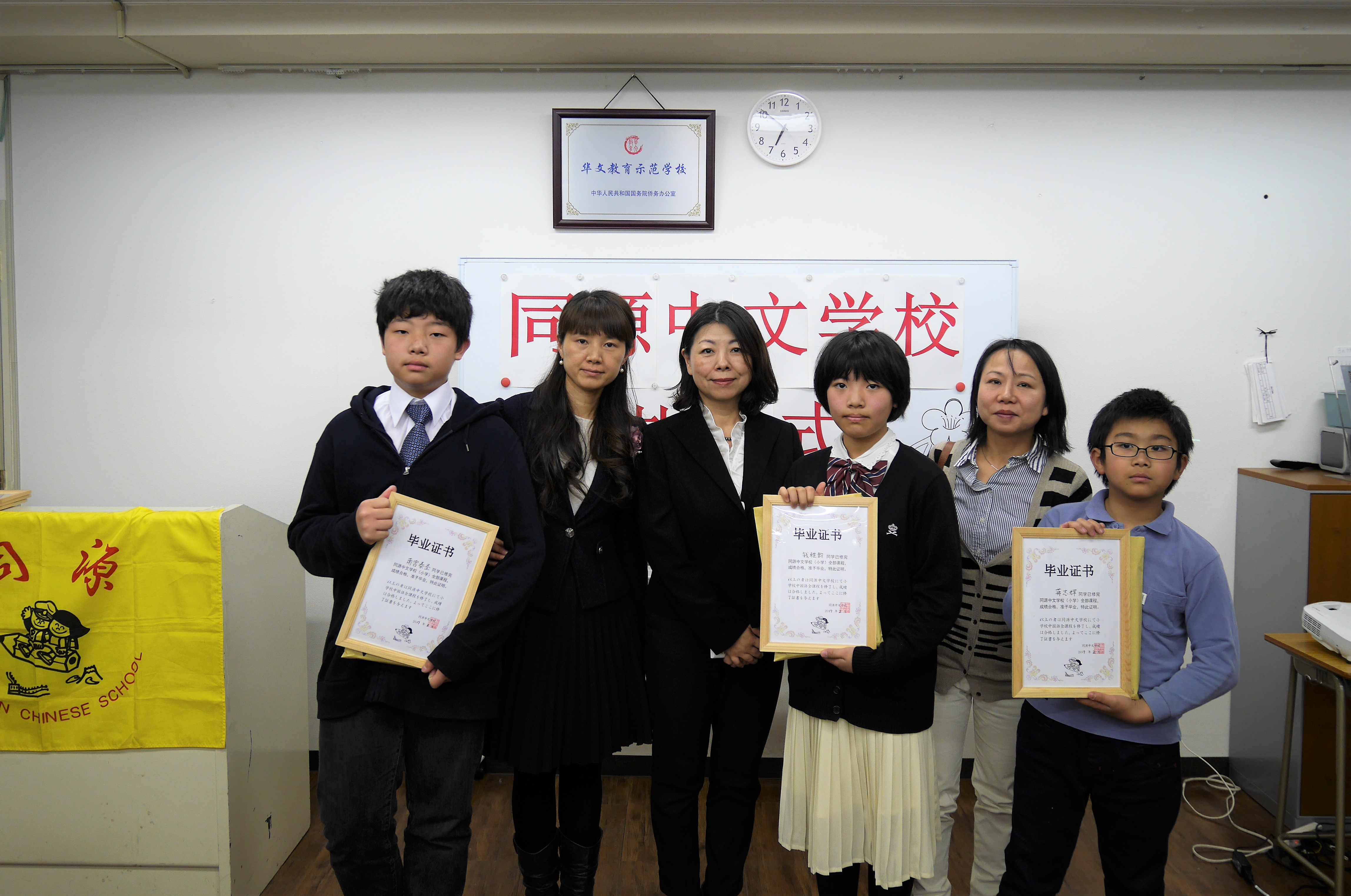 2017年2月26日下午五点半,同源中文学校举办了首次全校毕业典礼。池袋、町田、蕨、府中四个分校2016年度毕业的中小学生共58人,近百名毕业生、老师们家长出席了此次毕业典礼。大家欢聚一堂,共同见证孩子们的成长。