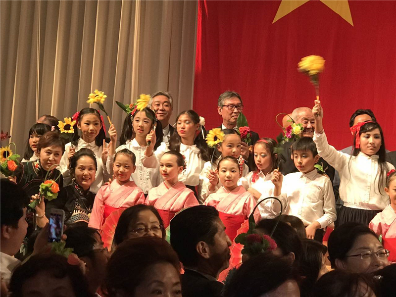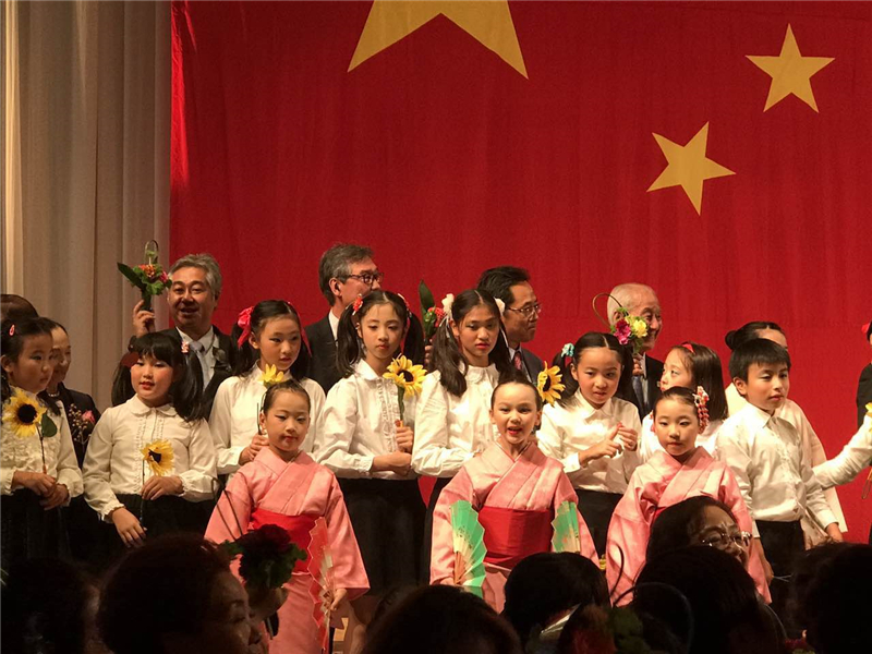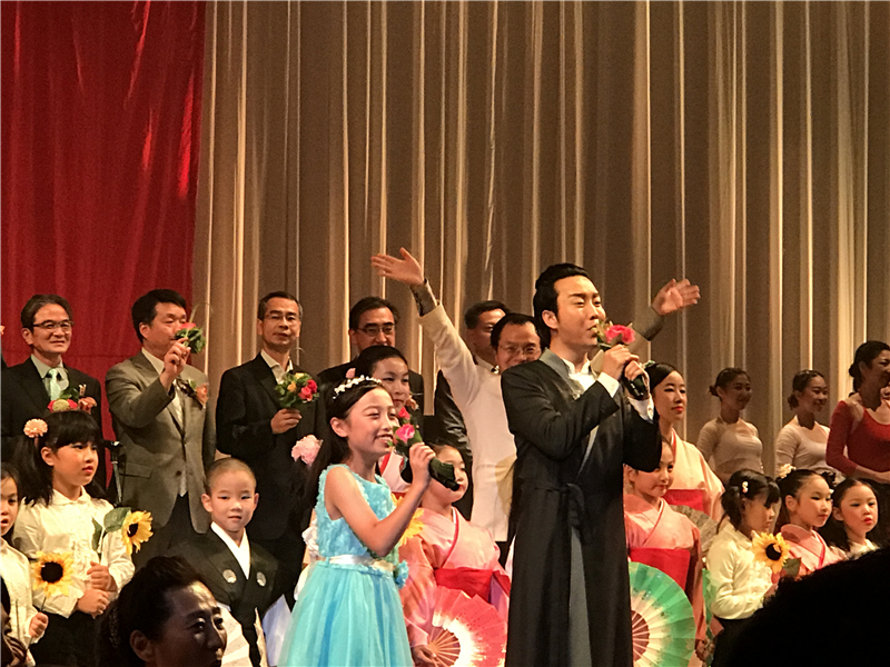 9月26日,日本侨界共祝祖国68周年暨中日邦交正常化45周年千人盛会圆满成功。同源合唱团有机会登台与各界人士及来自地震灾区福岛的小朋友们一同高唱《花は咲く》。在演员休息室,合唱团的团员和福岛的小朋友们一起练习,成了好朋友。听到福岛的小伙伴们来到会场要坐10个小时车,合唱团的团员们主动要做点什么表示心意,他们当场手绘了卡片送给远方来的朋友们,并合影留念,离别时依依不舍。