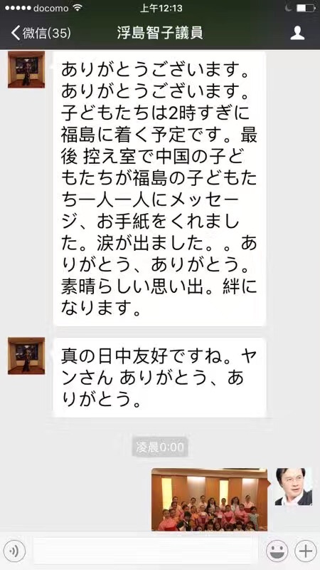 福岛朋友离开时给主办方的留言,感谢同源的学生和颜安先生。昨晚的舞台会印在孩子们的记忆中,而台下的友情会留在两国孩子们的心中,晚会主办方、指挥朱老师、小团员们、美妈们、同源的老师们给力!