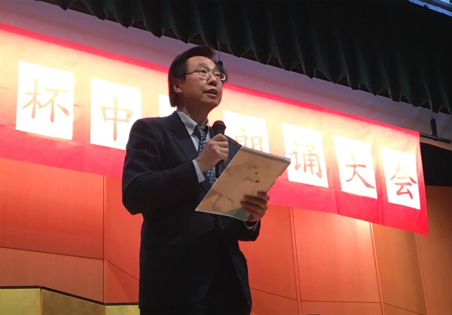 大会开幕,首先由日本华文教育协会颜安会长致辞,然后由刘迪教授作为评委代表,宣布了评分细则。颜安会长表示,“大使杯”中文朗诵大会为更多的在日华侨华人孩子提供平台,让更多的孩子通过中文的朗诵,能够感受到中华语言之美和中国文化之美,更深地感受到祖籍国的根和情。每一个汉字都是有温度、呼吸、脉动组成的生命体,更经过了几千年悠久岁月的积淀,当孩子们朗诵的时候一定会感受到它的根、魂、源,这也是父母家长的心愿。同时,设立“大使杯”也传达并包含了程永华大使、汪婉老师和使馆领导的情切关怀和殷切希望。希望孩子们发挥最佳状态,取得最好成绩,预祝本届大会圆满成功。