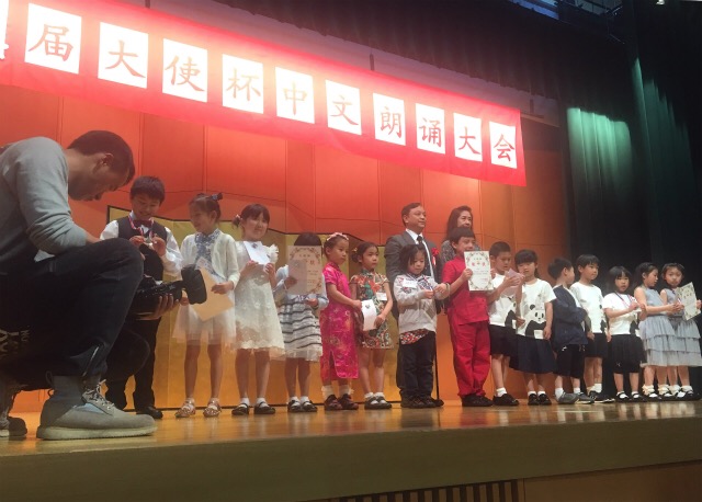 “大使杯”中文朗诵比赛今年是第四届,海外华人孩子们学汉语说汉语的热浪一年高过一年,今年共有198名选手参赛,是过往三届参赛人数的总和。从一开始报名就竞争激烈,自由报名不到两个小时名额全满。今年的大会分幼儿组、少儿组和自创组三个组别进行,设立了“大使杯”、金、银、铜奖共54个奖项及鼓励奖。人人参与,人人得奖;赛出水平,更赛出精神;赛出风格,更赛出友谊。
