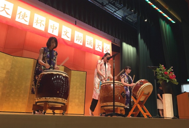 神田女学园为本次比赛提供了场地,并在比赛揭晓前奉献了一场精彩的大鼓表演。队员们动作娴熟、变化流畅,气韵生动,令台下的观众赞不绝口,掌声如雷。神田女学园学习中文的学生与台下小选手的齐声互动,更将会场推向了一个小高潮,日中友好,源于中文。