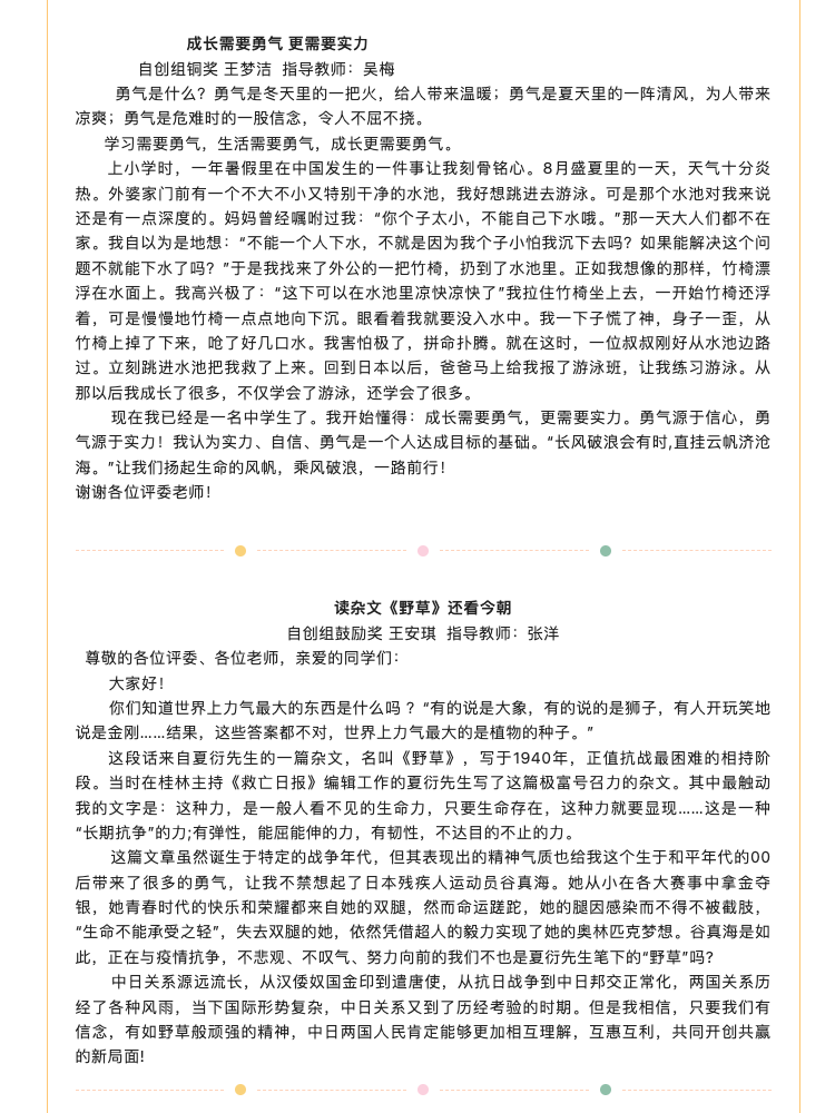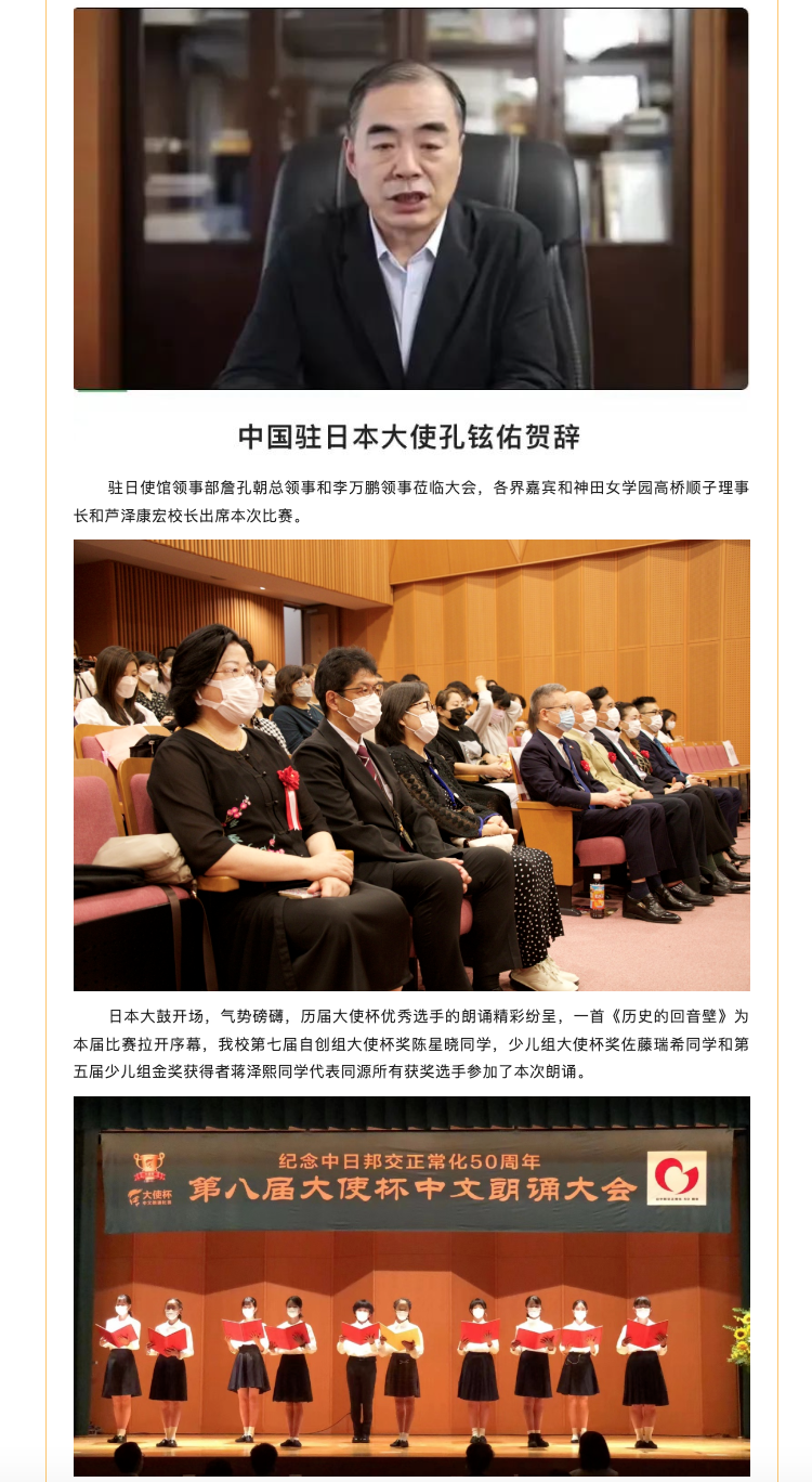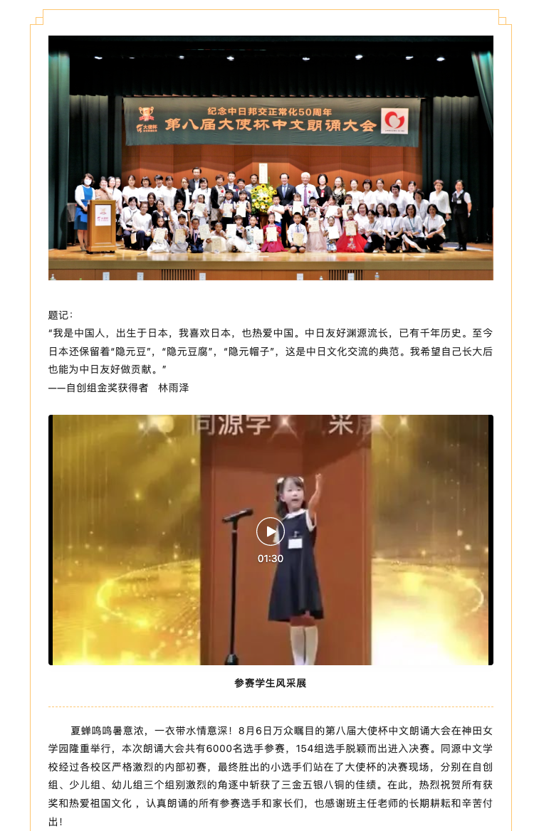 学好中文,做中日交流的桥梁--第八届大使杯中文朗诵大会同源选手再创佳绩
