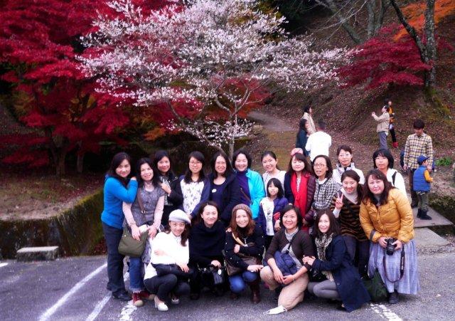 随后,我们还去了爱知县丰田市的小原。在小原这一“和纸”故乡,我们第一次观赏到樱花与红叶、银杏以及苍松翠柏交相辉映的美丽景象。小原的樱花叫四季樱,每年春秋两季盛开。虽然四季樱只开了6、7分,但依然令人赞叹和震撼。