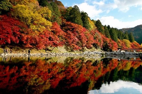 2014年11月24-25日两天,同源教师一行21人去爱知丰田市香岚溪和飞禅高山等地旅游研修。24日天气晴朗、风和日丽,巴士从东京出发开了5个多小时之后到达香岚溪。香岚溪是东海地区代表性的红叶胜地。11月中下旬枫叶正浓。这里游人如织,巴川美丽的溪流,伴着燃烧着的红叶,宛如锦秋的绘卷。