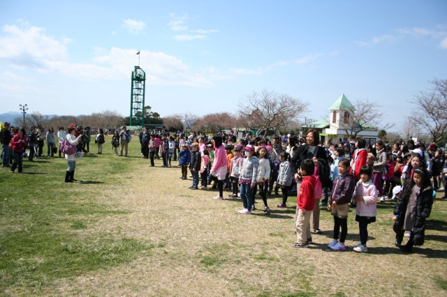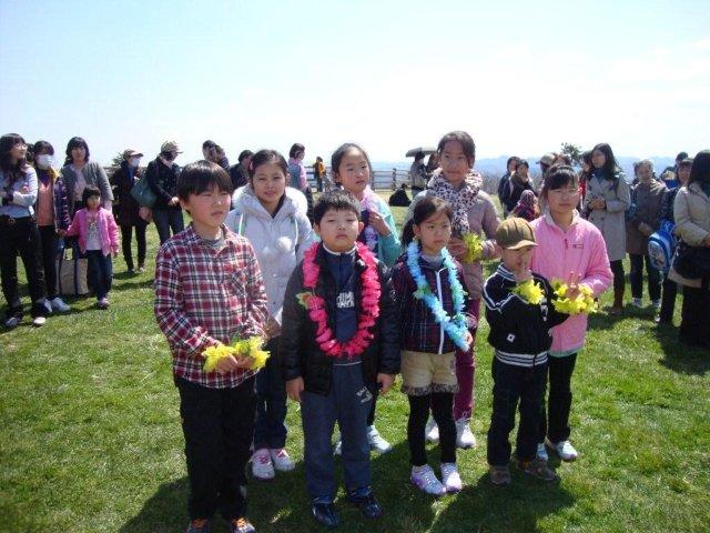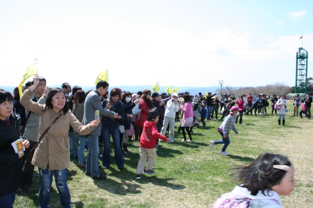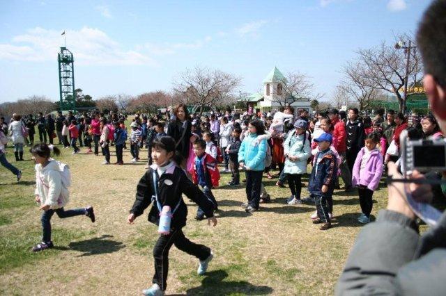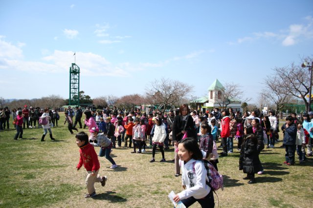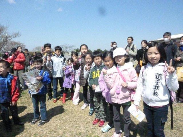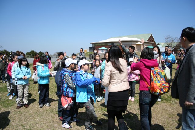 同源中文学校师生家长マザー牧場春游 4月8日,同源中文学校师生、家长380余人乘坐九辆大巴来到位于千叶县的マザー牧場举行一年一度的春游活动。学生首先在牧場的大草坪上做了读中文卡片接力赛的游戏,然后在牧场内观看了动物表演,与小动物玩耍,参加各种制作体验等等。最后大家来到牧场附近的草莓园摘吃新鲜的草莓。回程的巴士虽然遇到堵车,但看到美丽的夕阳,使大家消除了一天的疲劳,留下了美好的回忆。 做游戏1