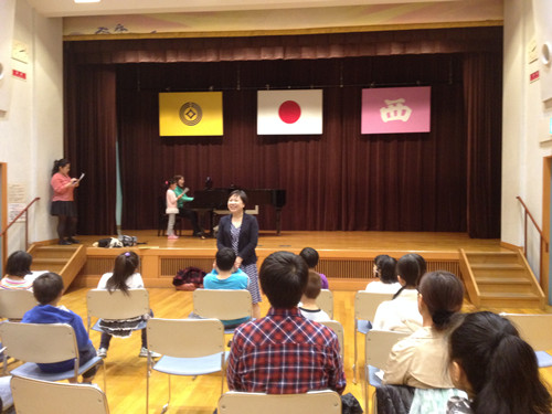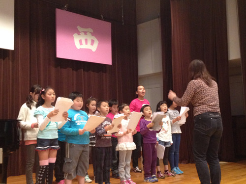 11月3日同源中文学校小合唱团成立暨第一次合练。13名中、小学生在家长陪伴下,由朱满铃老师、陈静佳老师(同源学校在校学生)指导,用中文、日文练习了《红蜻蜓》、《世界上唯一的花》两首歌曲。