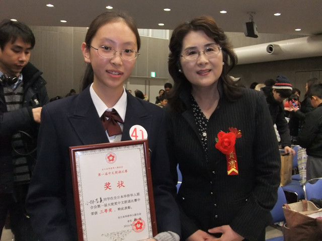 获奖同学小林吉美与中国驻日本大使夫人汪婉女士合影(小林提供照片)