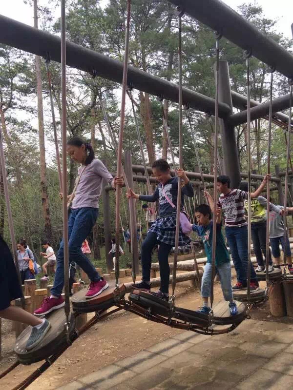 大人们尽情地欣赏自然美景,孩子们忘记一切尽情地玩耍。最有趣的要数冒险者体验项目,设在山间的24项木制惊险游玩项目,让大人和孩子们为此入迷,直到关园的时间已到,学生们意犹未尽,依依不舍地离开森林公园,有些家长说孩子玩得疯狂,连自己也受影响,把应该跟老师联系的事也给忘了。怪不得老师们都迫不及待地跟家长联系呢……