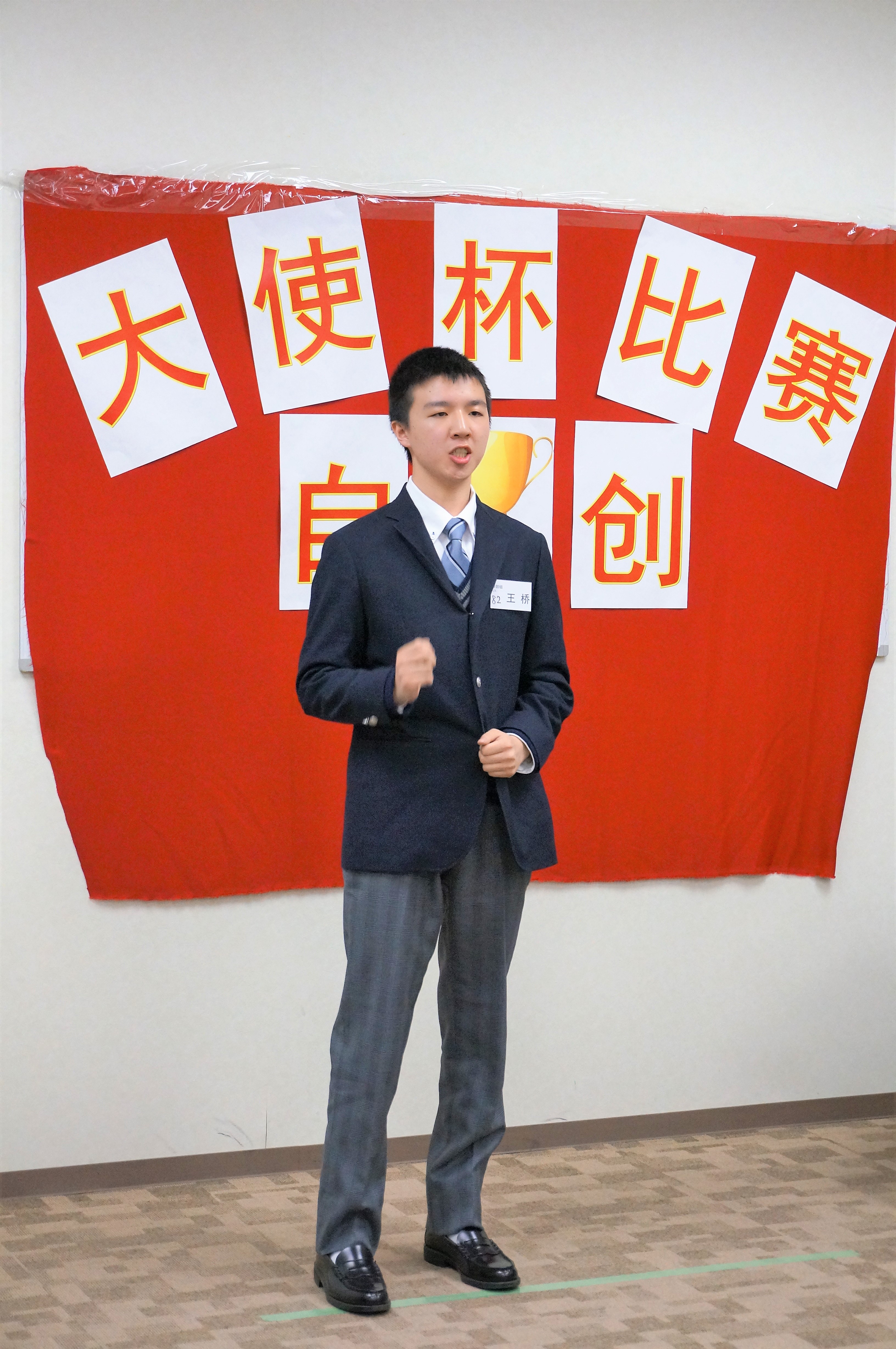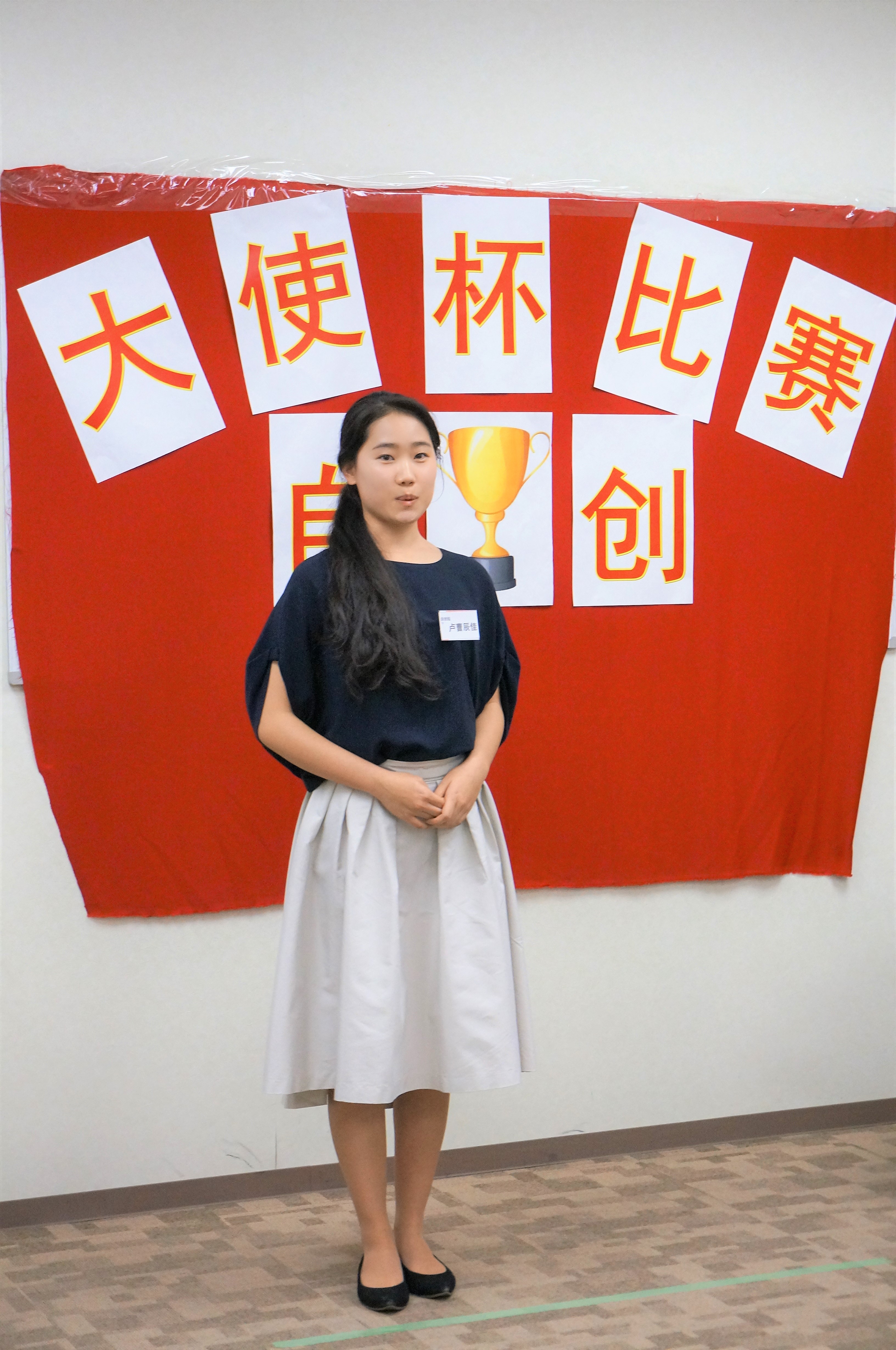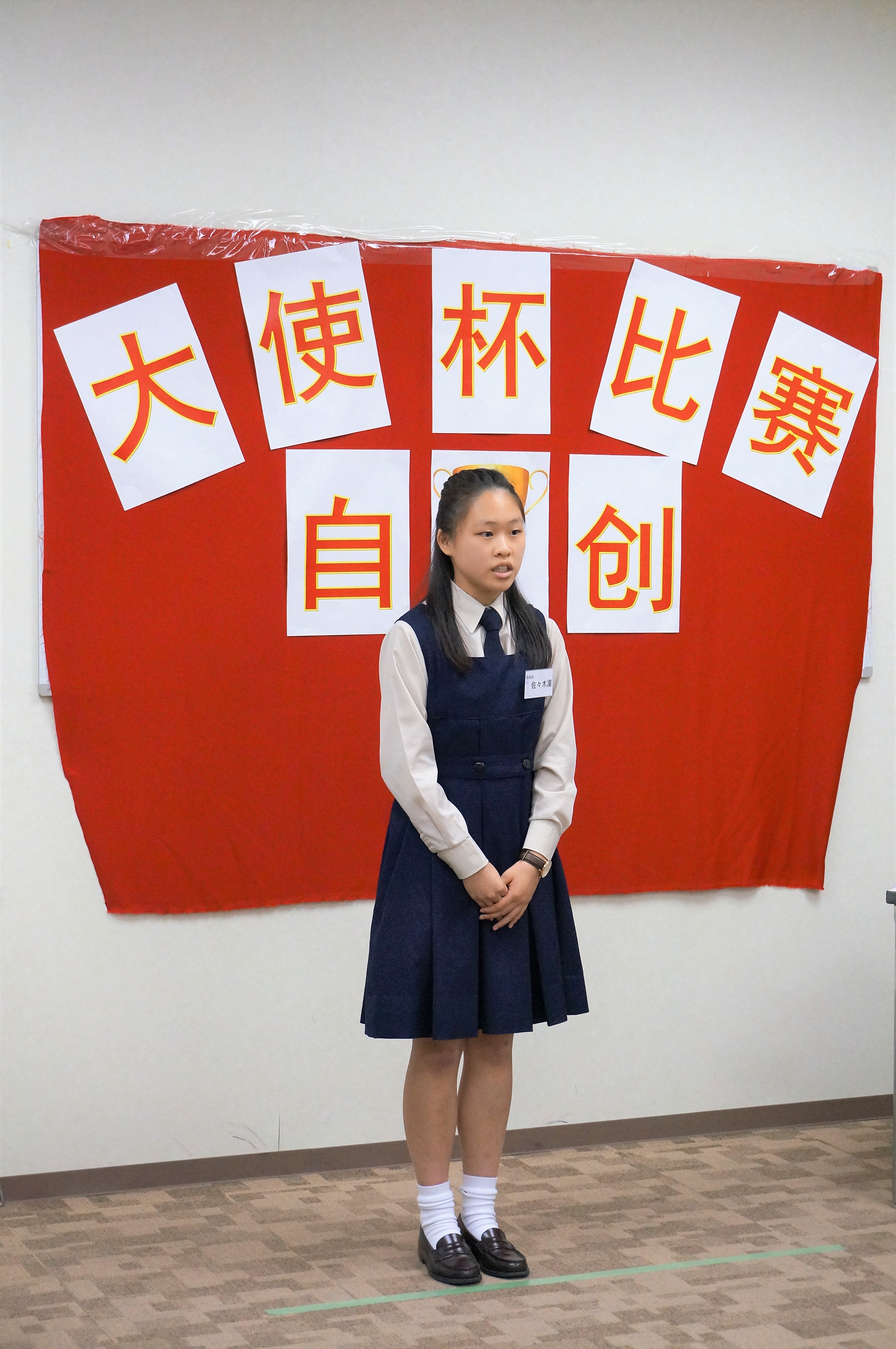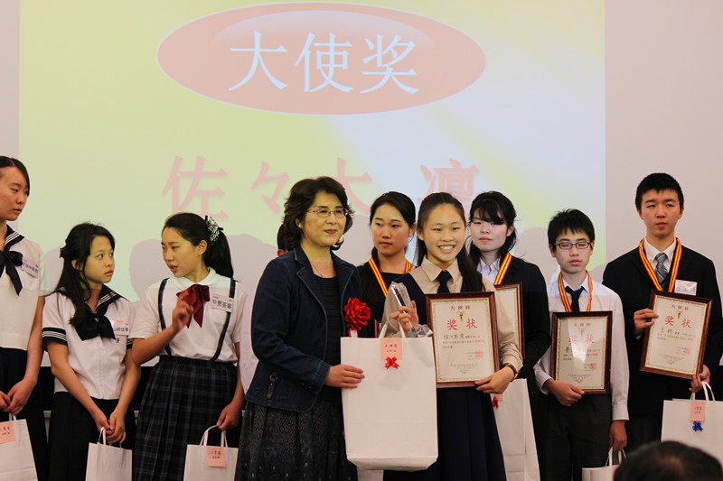 大使夫人汪婉女士为我校获得自创组大使杯奖的佐佐木凛颁奖