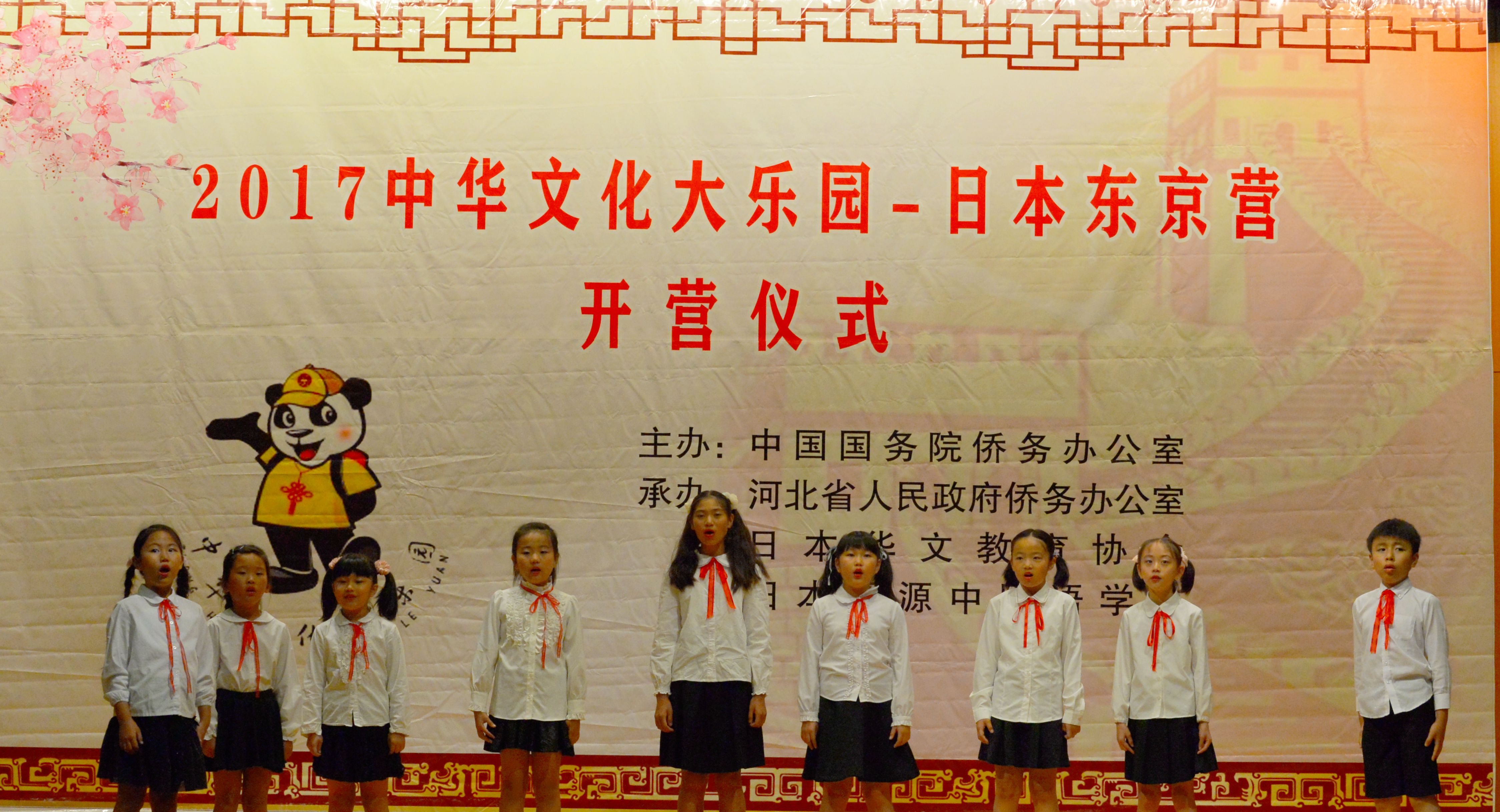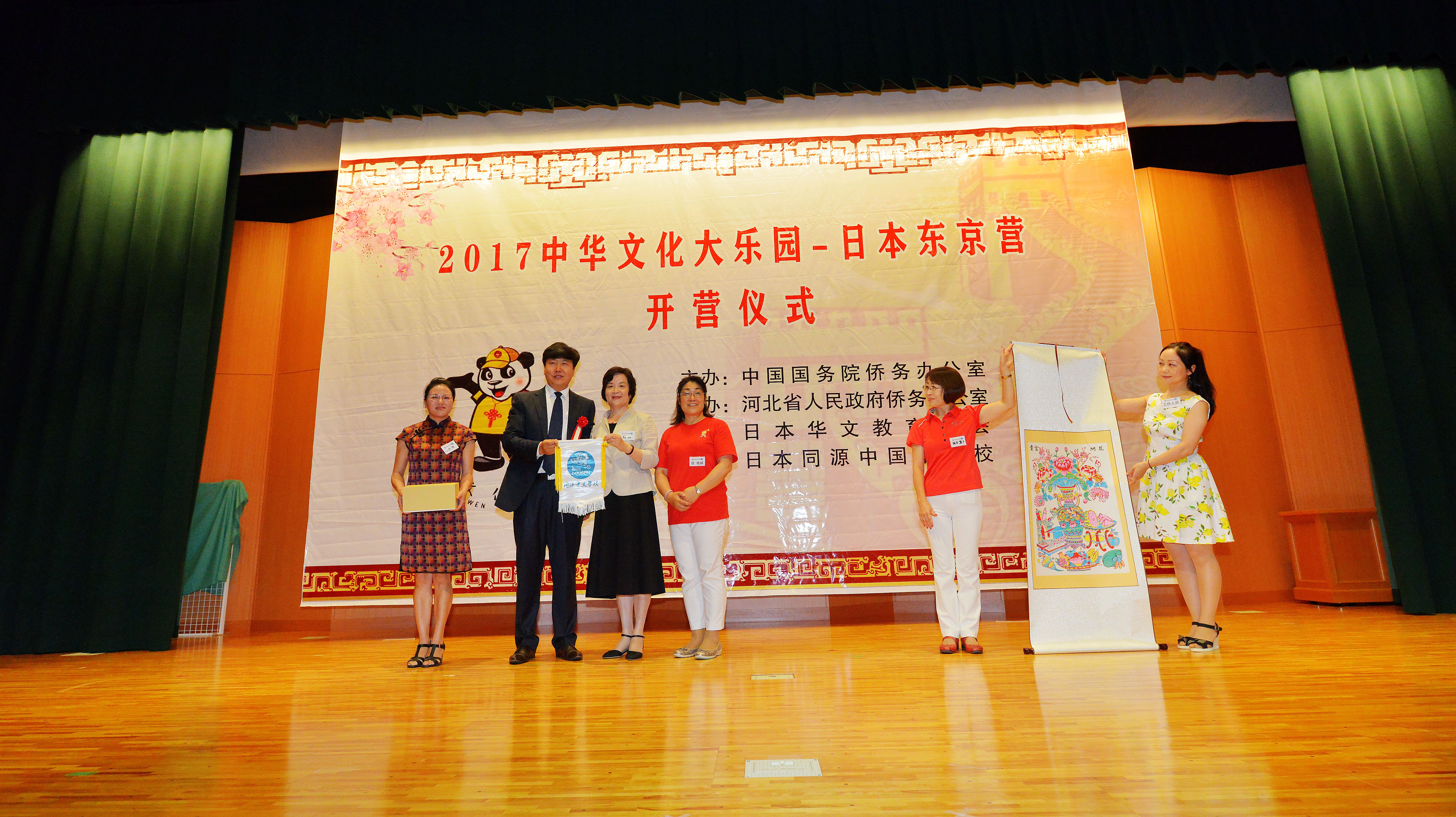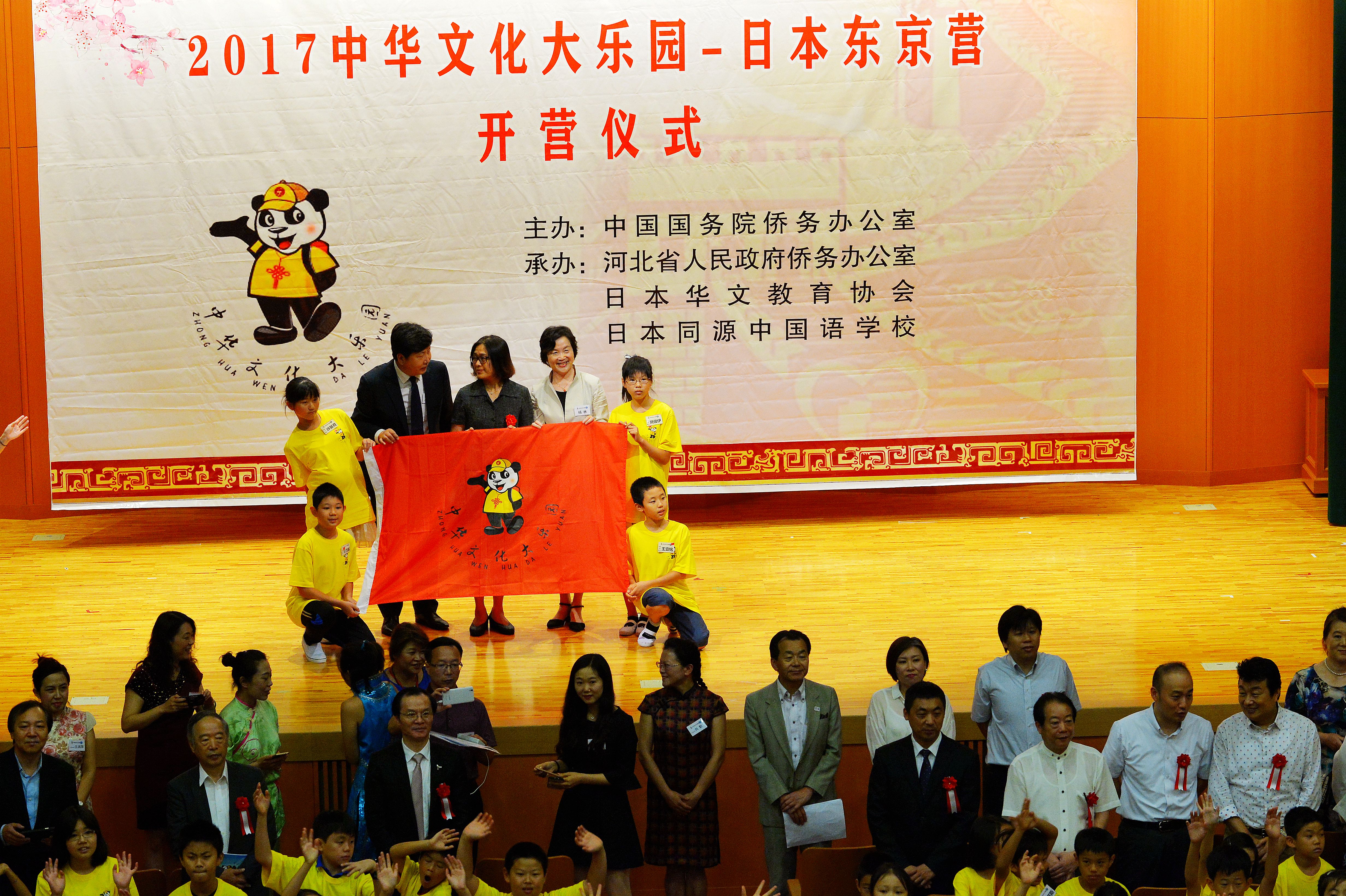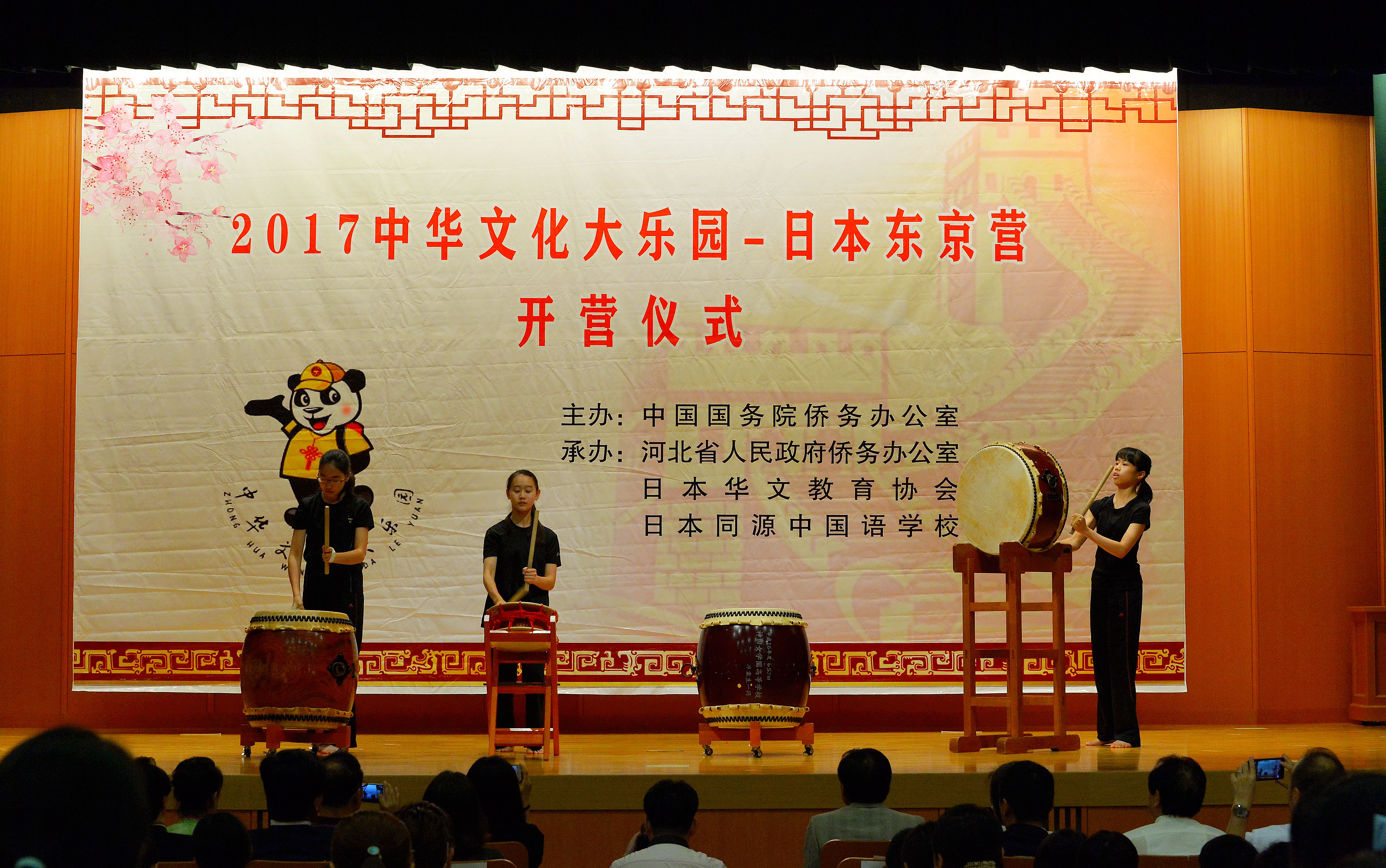 弘扬中国文化,传承龙的精神!面向在日华人子女的暑期夏令营——2017年“中华文化大乐园”日本东京营的开营仪式,7月24日上午在位于东京千代田区的东京神田女学园大礼堂隆重举行,中国驻日本大使馆参赞高振杰、中国河北省外侨办副调研员徐炳旭、日本华文教育协会会长颜安等嘉宾应邀与会并登台致辞,200多名参加东京营学习的华人孩子们及100多位家长,来自河北省外侨办选派的十多位老师,以及神田女学园校长高桥顺子女士,全日本华侨华人联合会会长刘洪友、横滨山手中华学校校长张岩松等有关方面负责人,也一同参加了这一喜庆热烈、充满活力的开营仪式。
