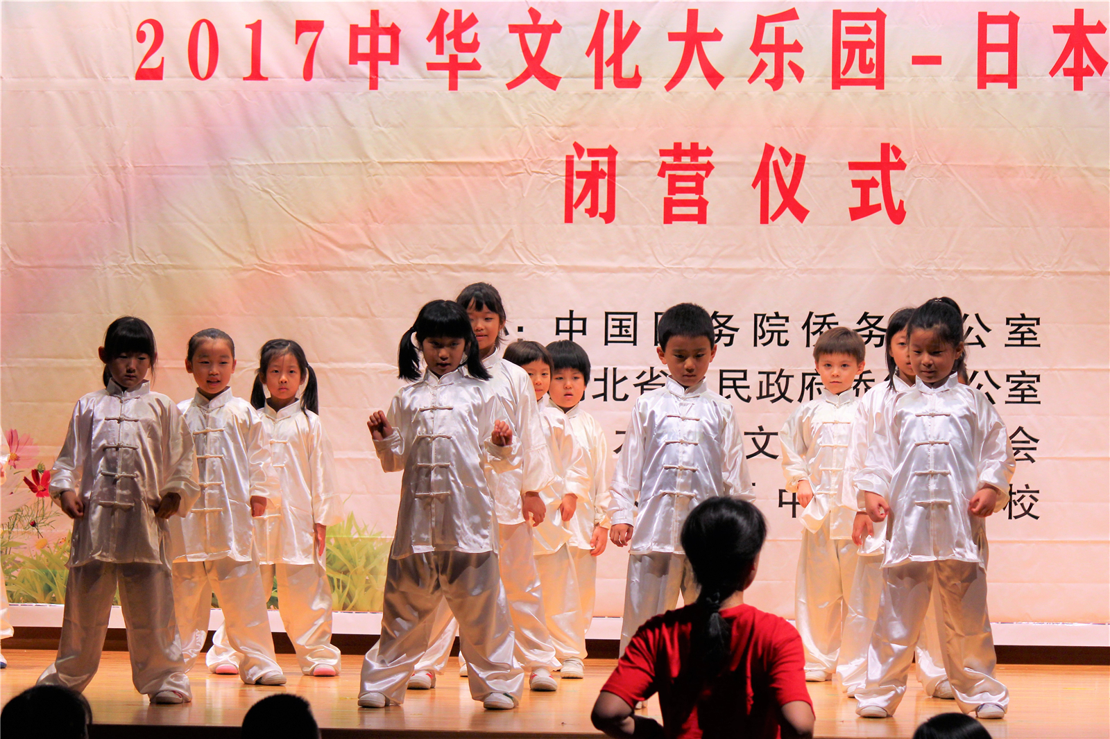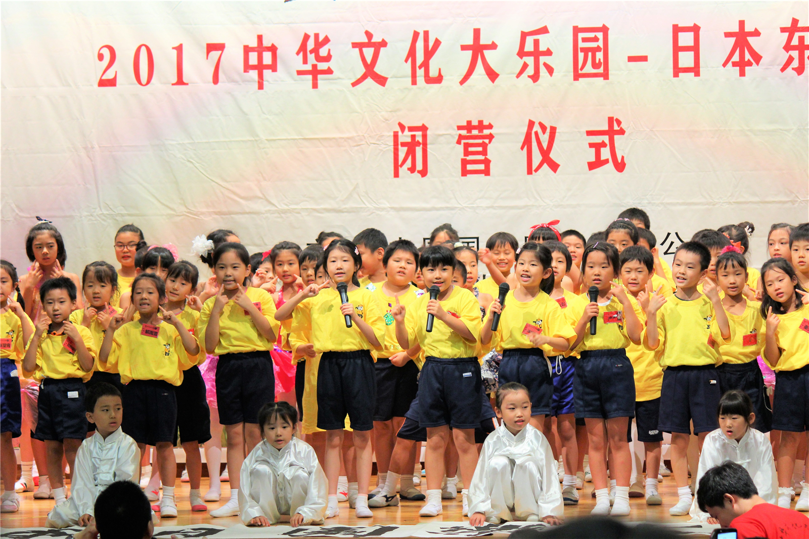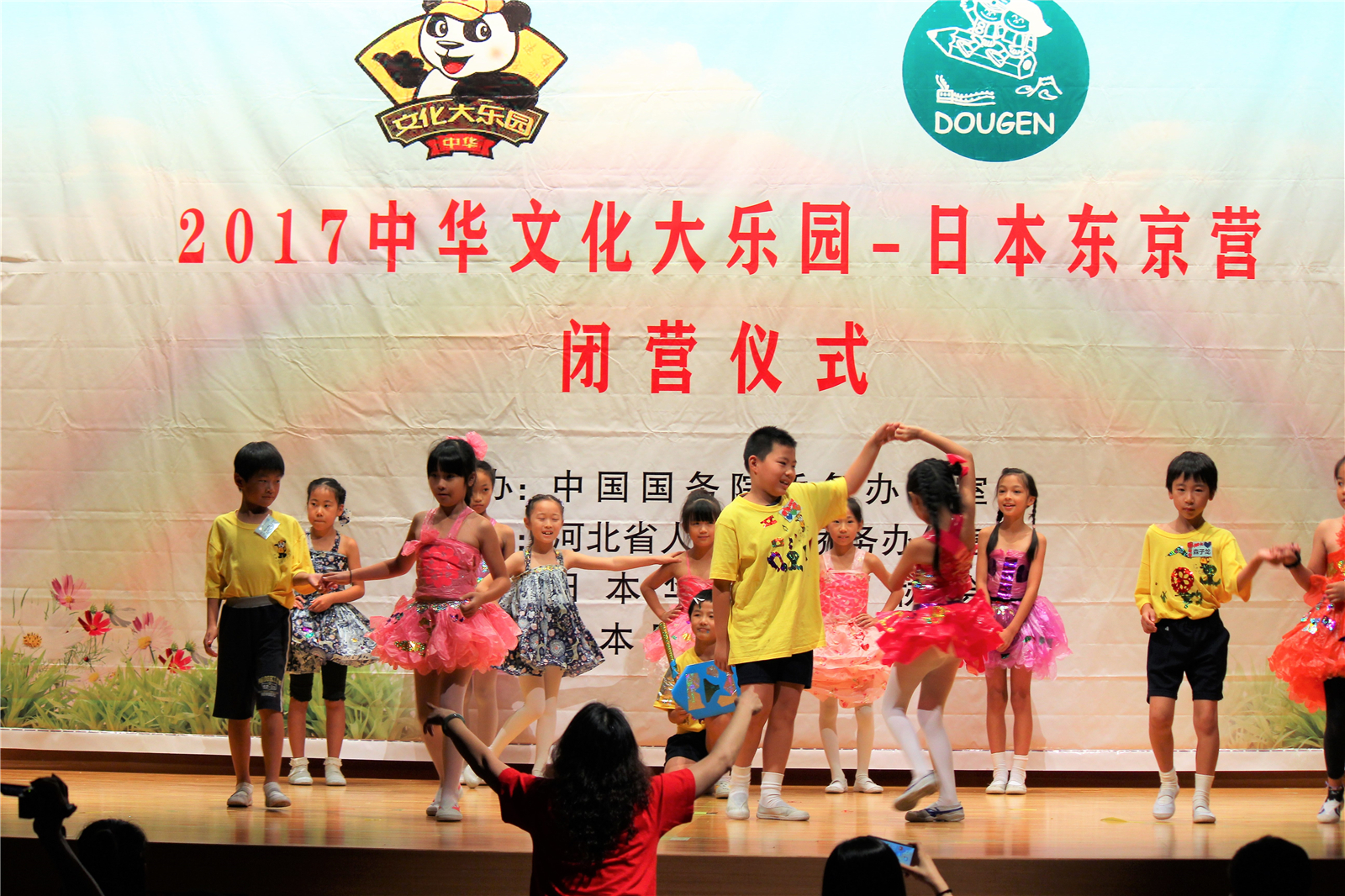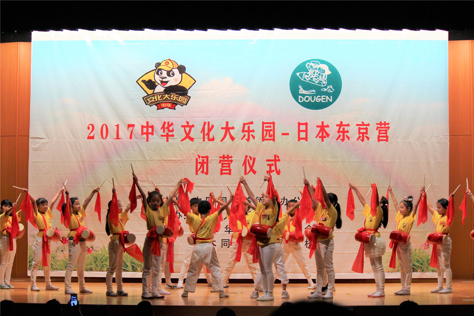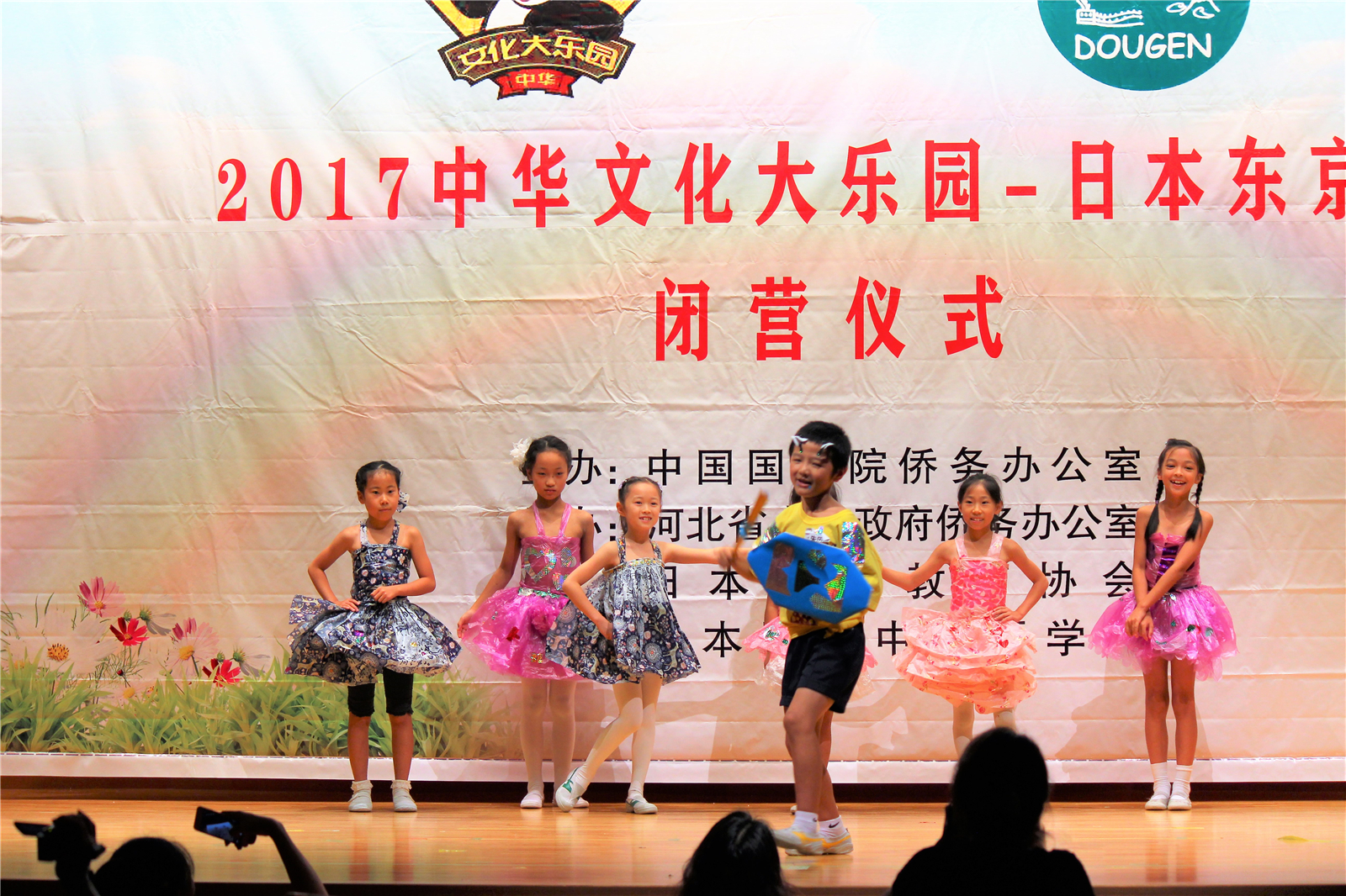 2017年7月31日下午,中国文化大乐园东京营闭营式在震耳欲聋的腰鼓声中拉开了帷幕。在闭营式上,10个班的小营员们先后表演了11个精彩的节目,展示了他们的8天的学习成果。悠远古韵的诗词、苍劲有力的书法、动作优美的舞蹈、浓淡相宜的国画、节奏欢快的腰鼓、姿势连贯的长拳、铿锵有力的京剧、寓意吉祥的年画、造型别致的剪纸、传统健身的五禽戏、激昂顿挫的歌曲。赢得了河北老师、嘉宾以及家长们的阵阵掌声。