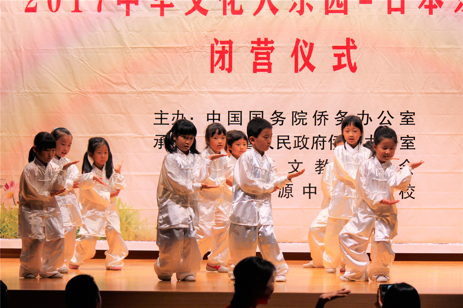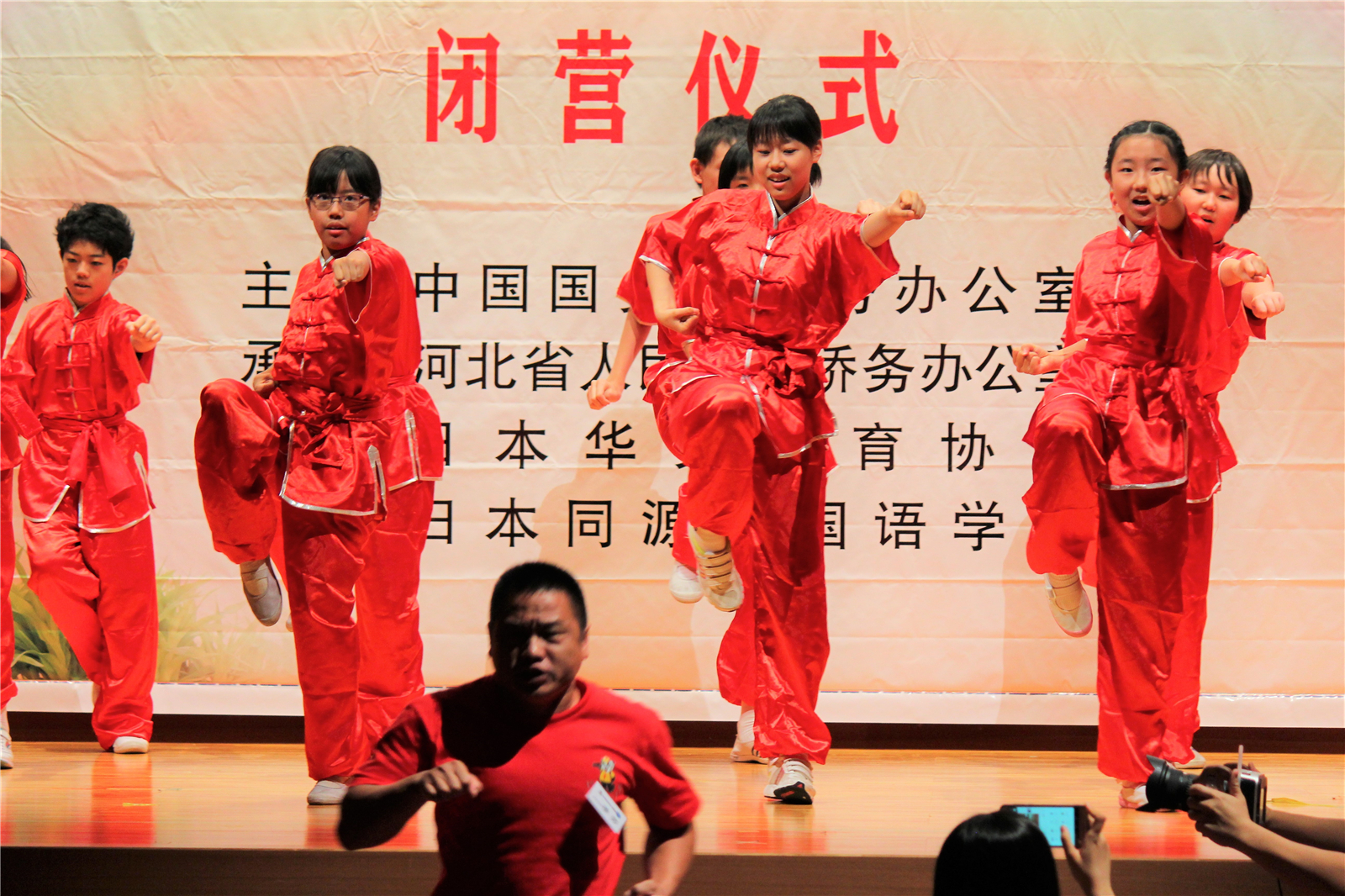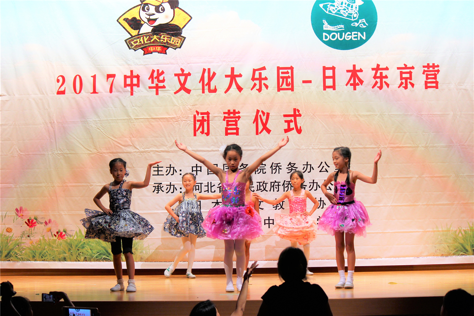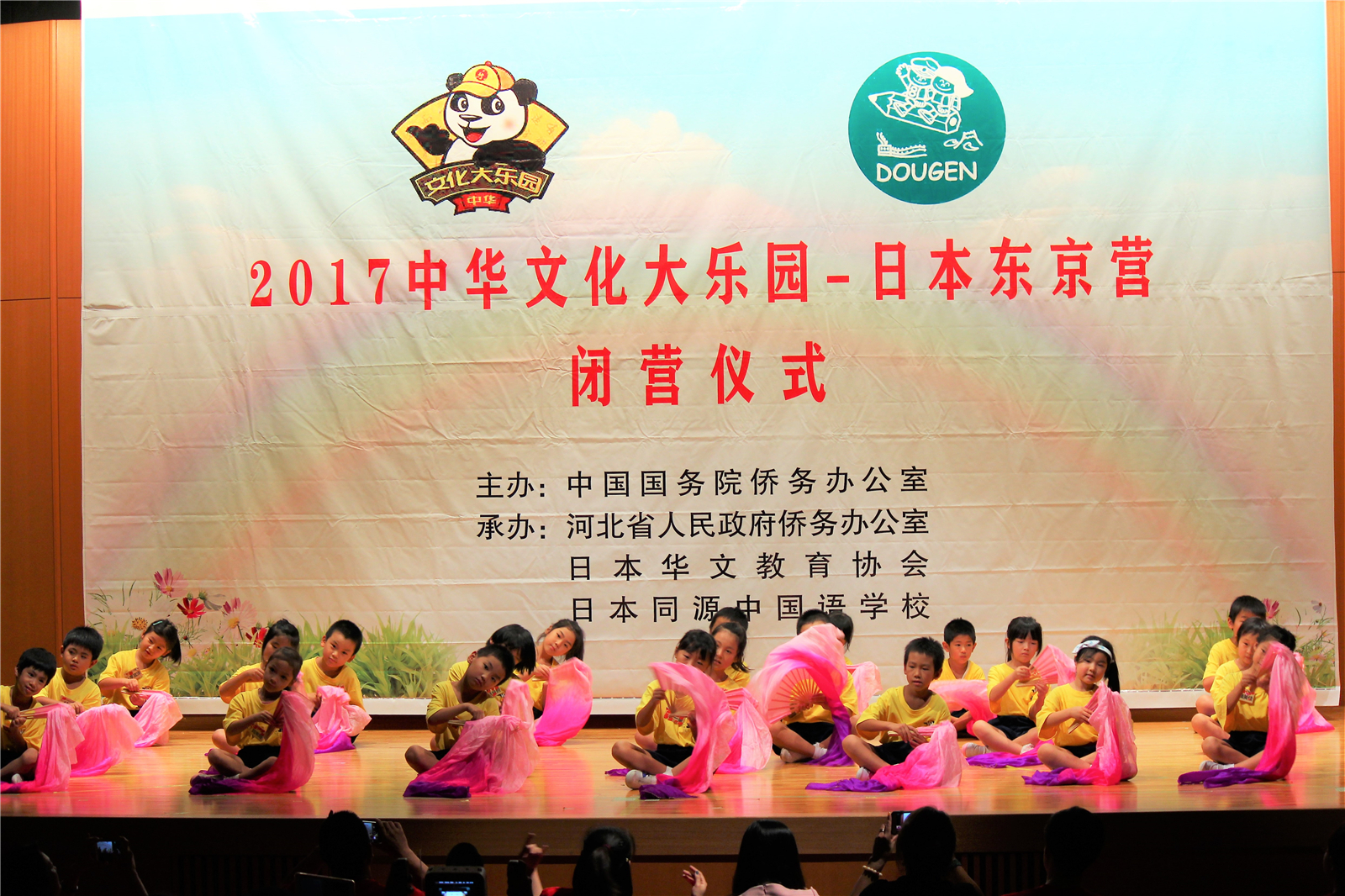 2017年7月31日下午,中国文化大乐园东京营闭营式在震耳欲聋的腰鼓声中拉开了帷幕。在闭营式上,10个班的小营员们先后表演了11个精彩的节目,展示了他们的8天的学习成果。悠远古韵的诗词、苍劲有力的书法、动作优美的舞蹈、浓淡相宜的国画、节奏欢快的腰鼓、姿势连贯的长拳、铿锵有力的京剧、寓意吉祥的年画、造型别致的剪纸、传统健身的五禽戏、激昂顿挫的歌曲。赢得了河北老师、嘉宾以及家长们的阵阵掌声。