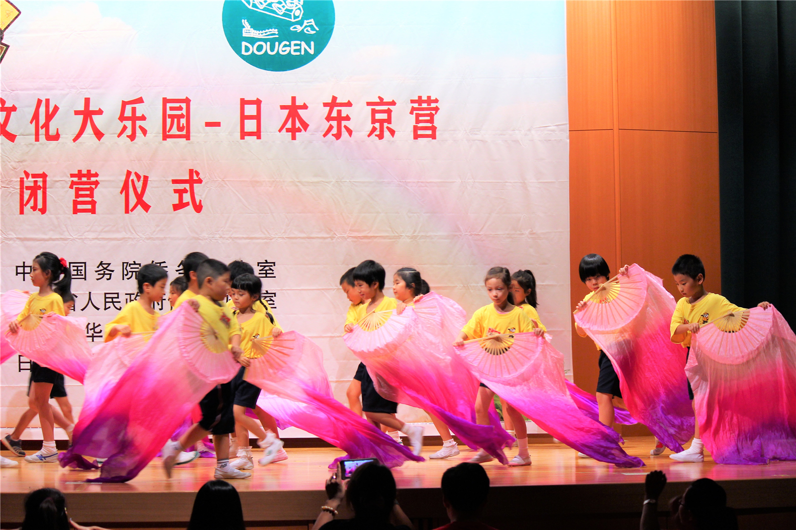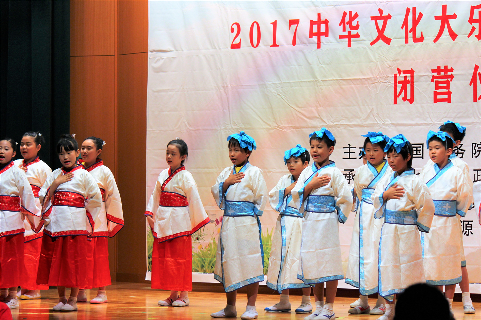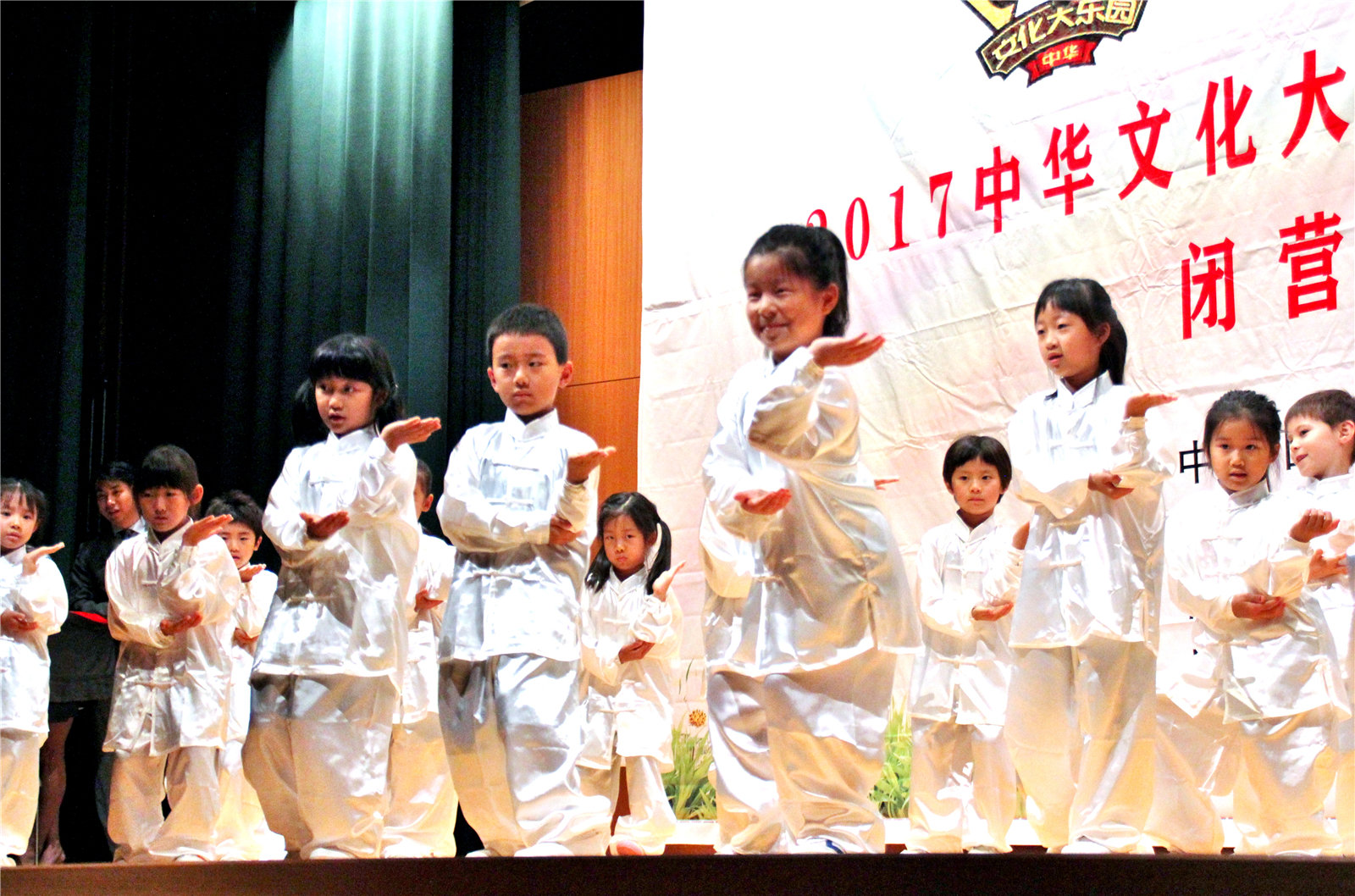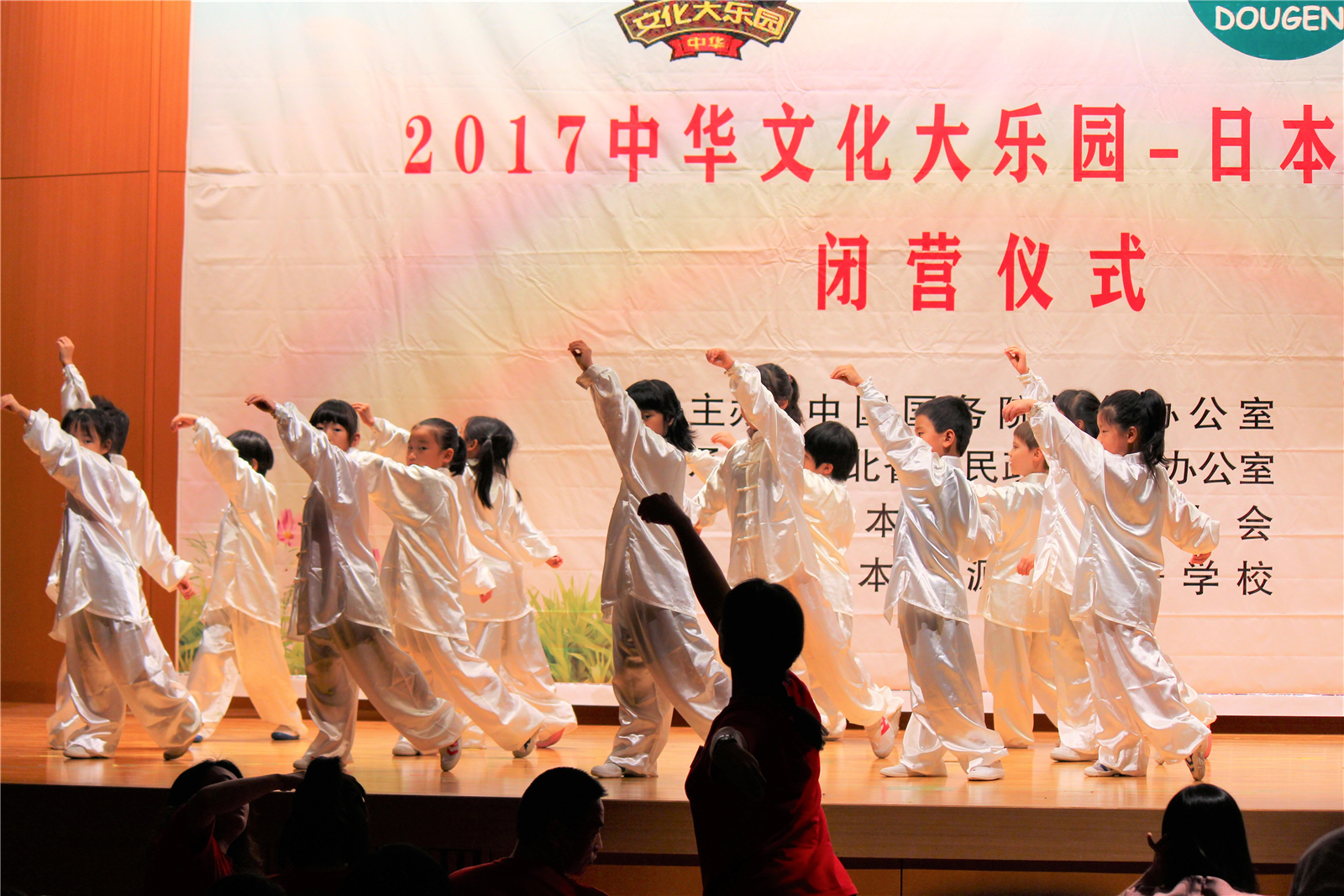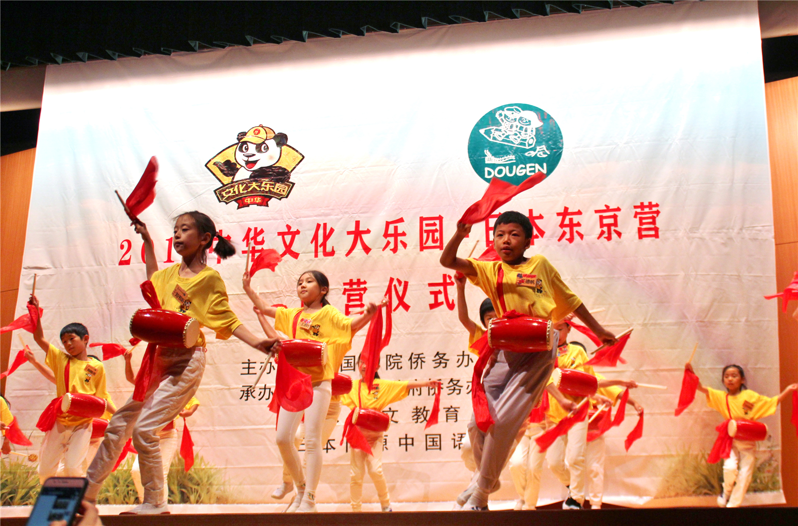 2017年7月31日下午,中国文化大乐园东京营闭营式在震耳欲聋的腰鼓声中拉开了帷幕。在闭营式上,10个班的小营员们先后表演了11个精彩的节目,展示了他们的8天的学习成果。悠远古韵的诗词、苍劲有力的书法、动作优美的舞蹈、浓淡相宜的国画、节奏欢快的腰鼓、姿势连贯的长拳、铿锵有力的京剧、寓意吉祥的年画、造型别致的剪纸、传统健身的五禽戏、激昂顿挫的歌曲。赢得了河北老师、嘉宾以及家长们的阵阵掌声。