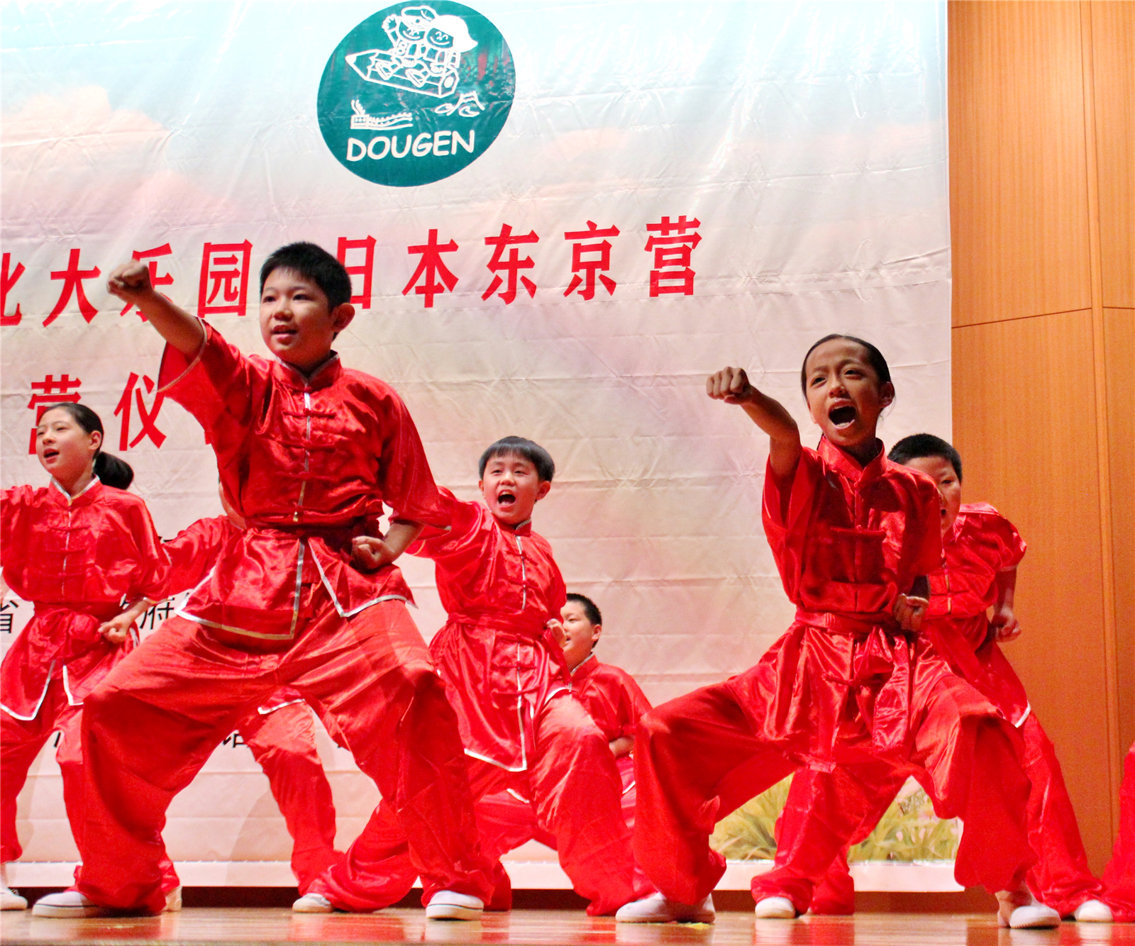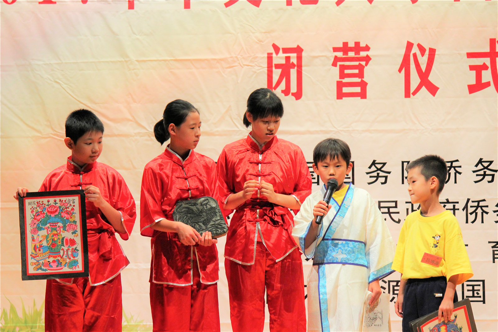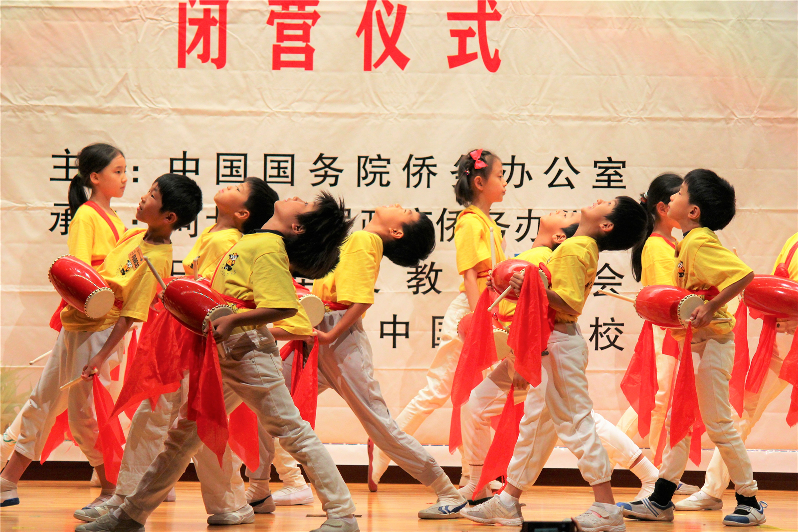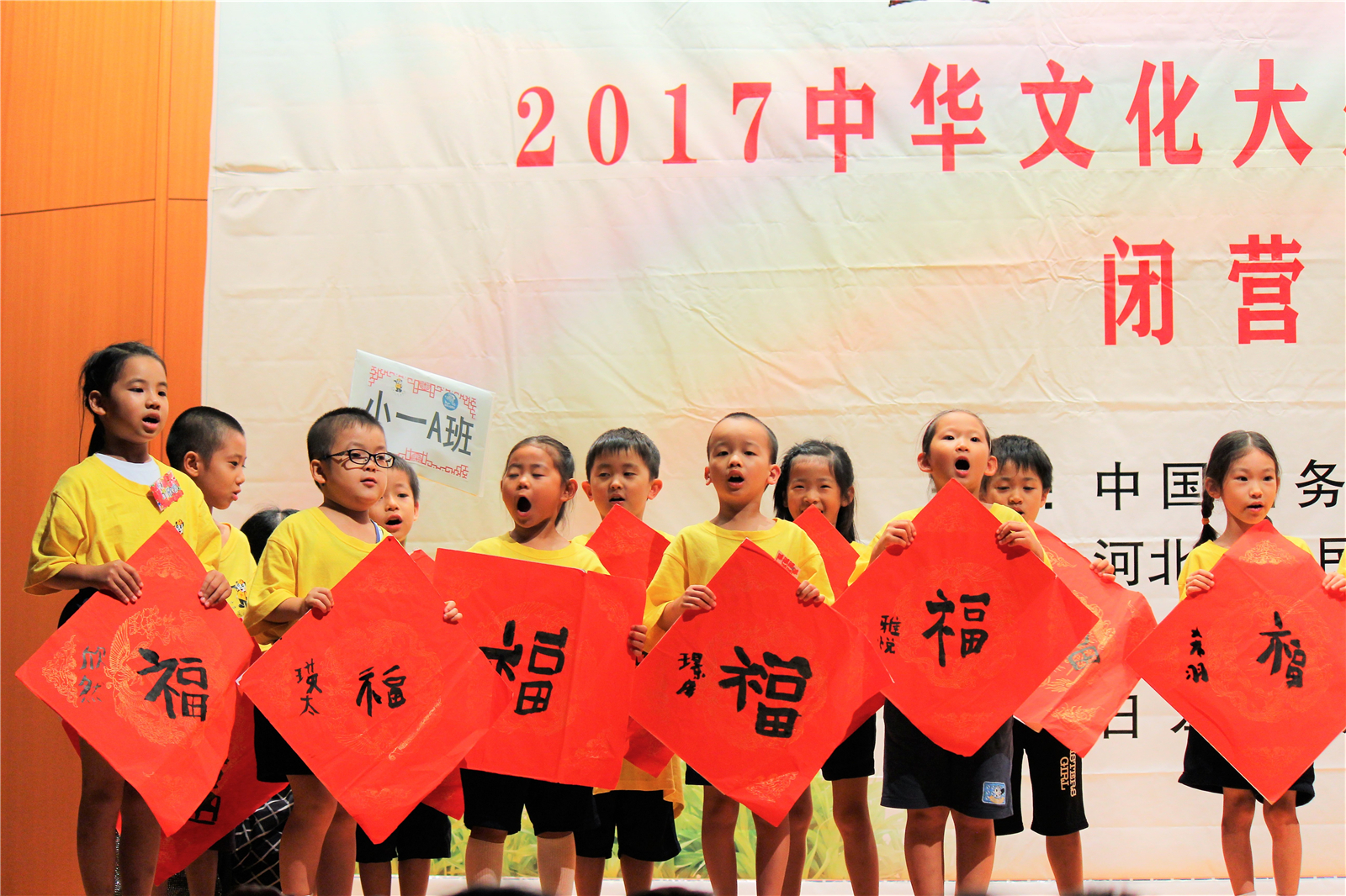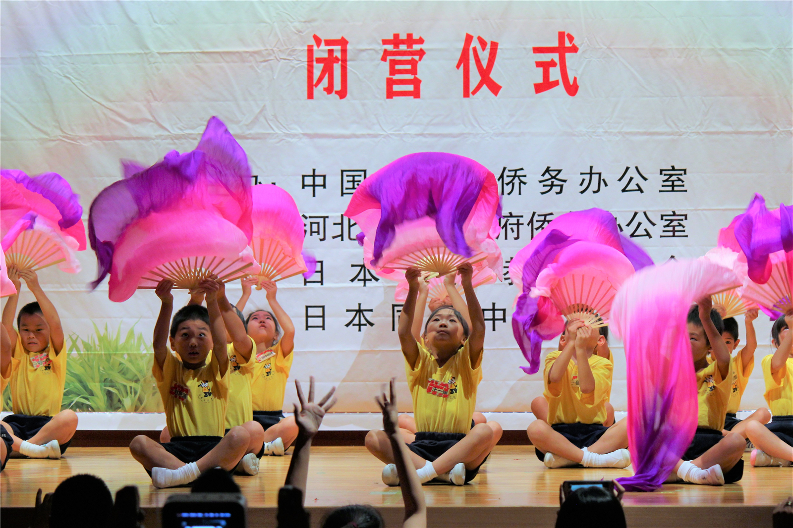 2017年7月31日下午,中国文化大乐园东京营闭营式在震耳欲聋的腰鼓声中拉开了帷幕。在闭营式上,10个班的小营员们先后表演了11个精彩的节目,展示了他们的8天的学习成果。悠远古韵的诗词、苍劲有力的书法、动作优美的舞蹈、浓淡相宜的国画、节奏欢快的腰鼓、姿势连贯的长拳、铿锵有力的京剧、寓意吉祥的年画、造型别致的剪纸、传统健身的五禽戏、激昂顿挫的歌曲。赢得了河北老师、嘉宾以及家长们的阵阵掌声。