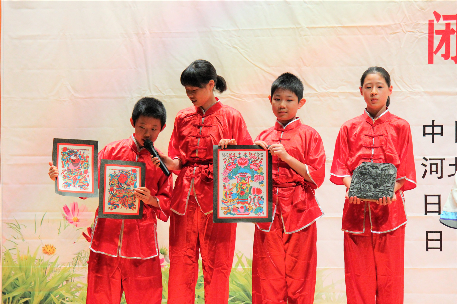 年画是中国传统文化的一部分。人们在过年是制作和张贴漂亮的年画,年画的内容丰富多彩,寓意吉祥。起到增添节日的喜庆气氛的作用。河北武强年画是中国的非物质文化遗产。说年画的节目,由年画刘默老师指导,由各班学生代表表演。刘默老师说,最小的那个小男生主动要求上台表演背诵十二生肖。