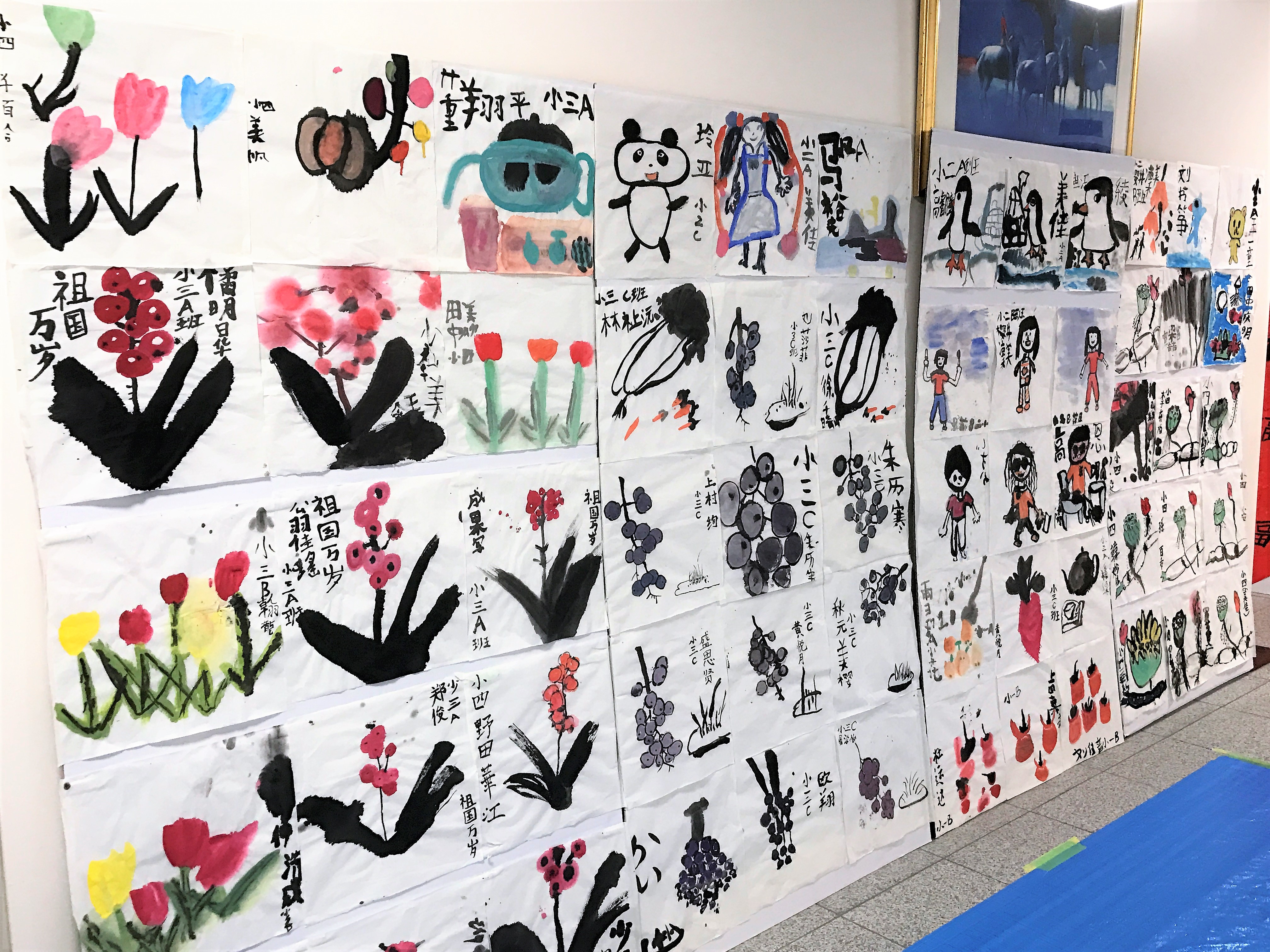 中国画是我们十大国粹之首,运用独有的毛笔作画方式,凭借水墨和中国画颜料进行创作的艺术表现形式。孩子们的作品已经在走廊里进行着展示,多得几乎照不过来。闭营式结束后,家长们纷纷寻找自己孩子的作品,小心翼翼地夹起来带回家去。中国画作品最多。夏老师对孩子们的天赋赞不绝口。