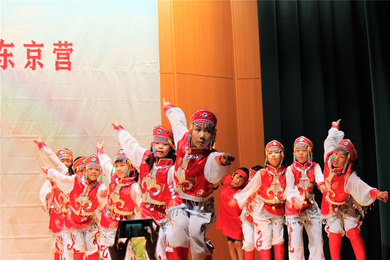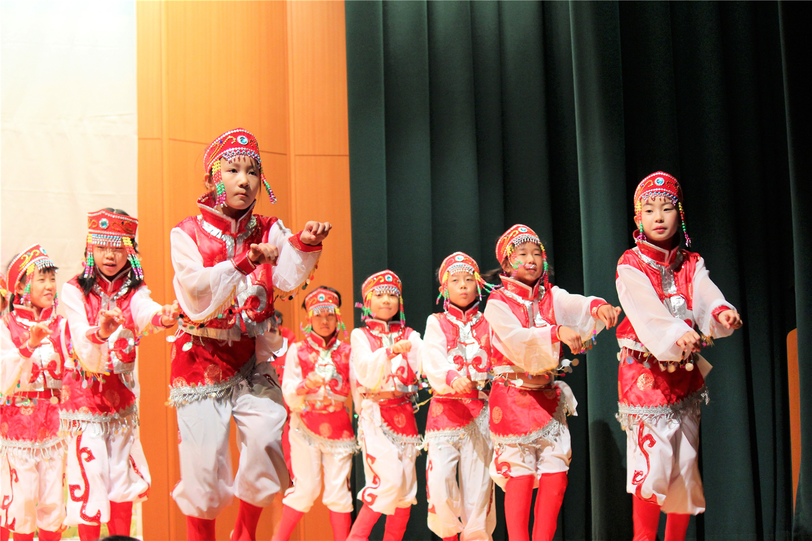 蒙古族是能歌善舞的民族。它的舞蹈产生于民间,已经有150多年的历史。蒙古族舞蹈的特点是节奏明快,热情奔放。民族舞蹈蒙古舞《欢乐草原》,由王静老师指导,小三A班表演。小营员们那优美的舞姿仿佛骑在马上,拉紧缰绳,奔驰在无边的草原!