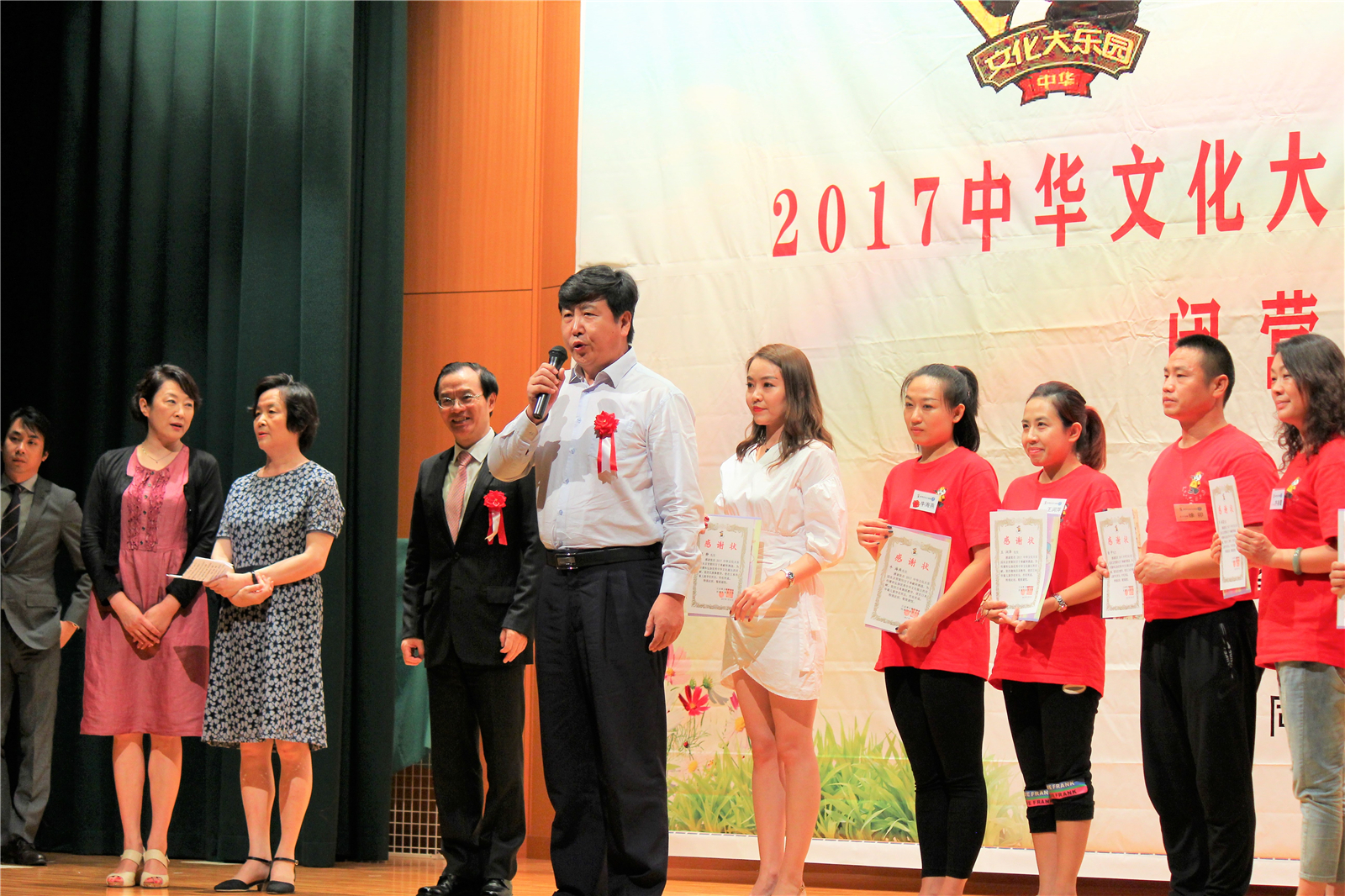 接下来同源中文学校杨林校长致辞,对国务院侨办、河北省侨办、神田女子学园的高桥校长、12位河北老师、10位班主任老师、12位工作人员、12位志愿者以及所有家长再次表示衷心感谢。接着由华文教育协会会长颜安先生向12位河北老师颁发感谢状,感谢他们的辛勤付出。河北省徐主任也致辞表达谢意,并向同源中文学校赠送了所有道具。
