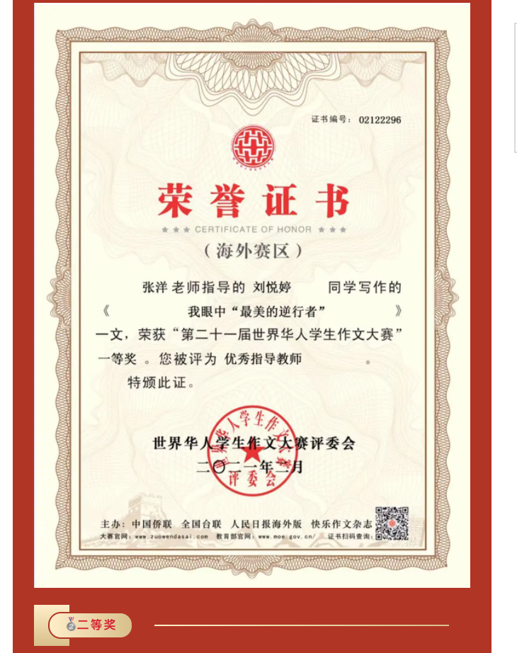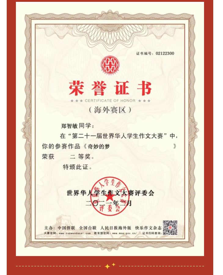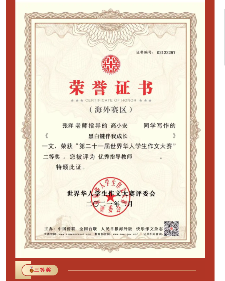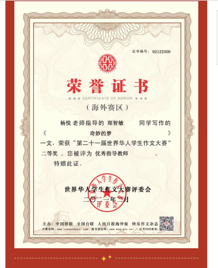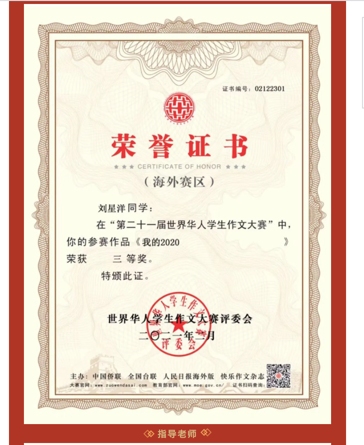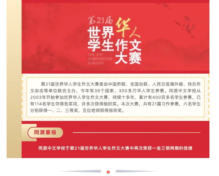 同源中文学校于第21届世界华人学生作文大赛中再次荣获一金三银两铜的佳绩