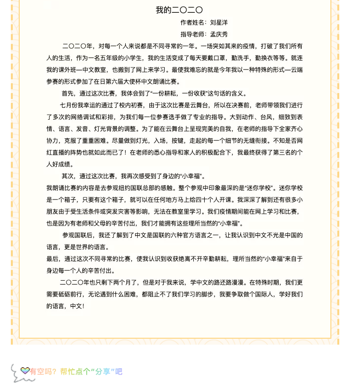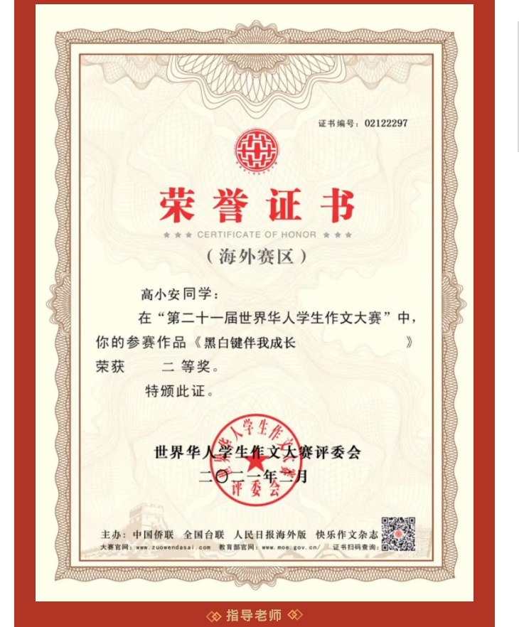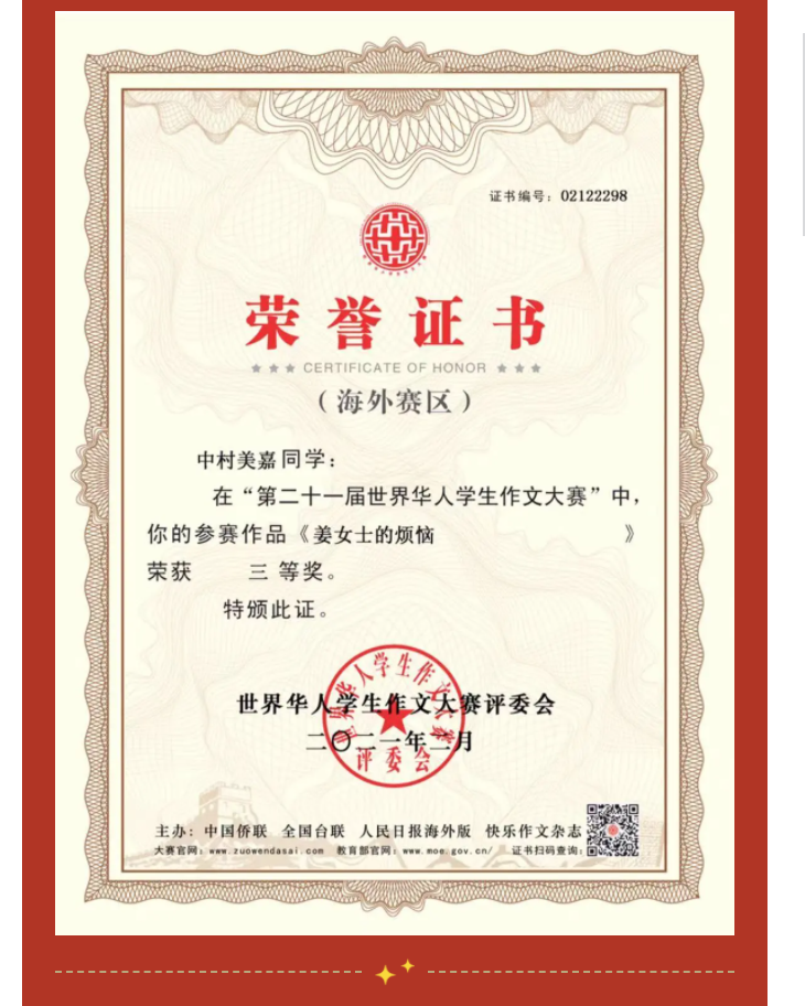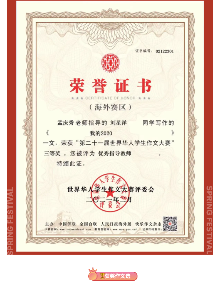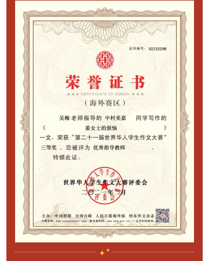 同源中文学校于第21届世界华人学生作文大赛中再次荣获一金三银两铜的佳绩