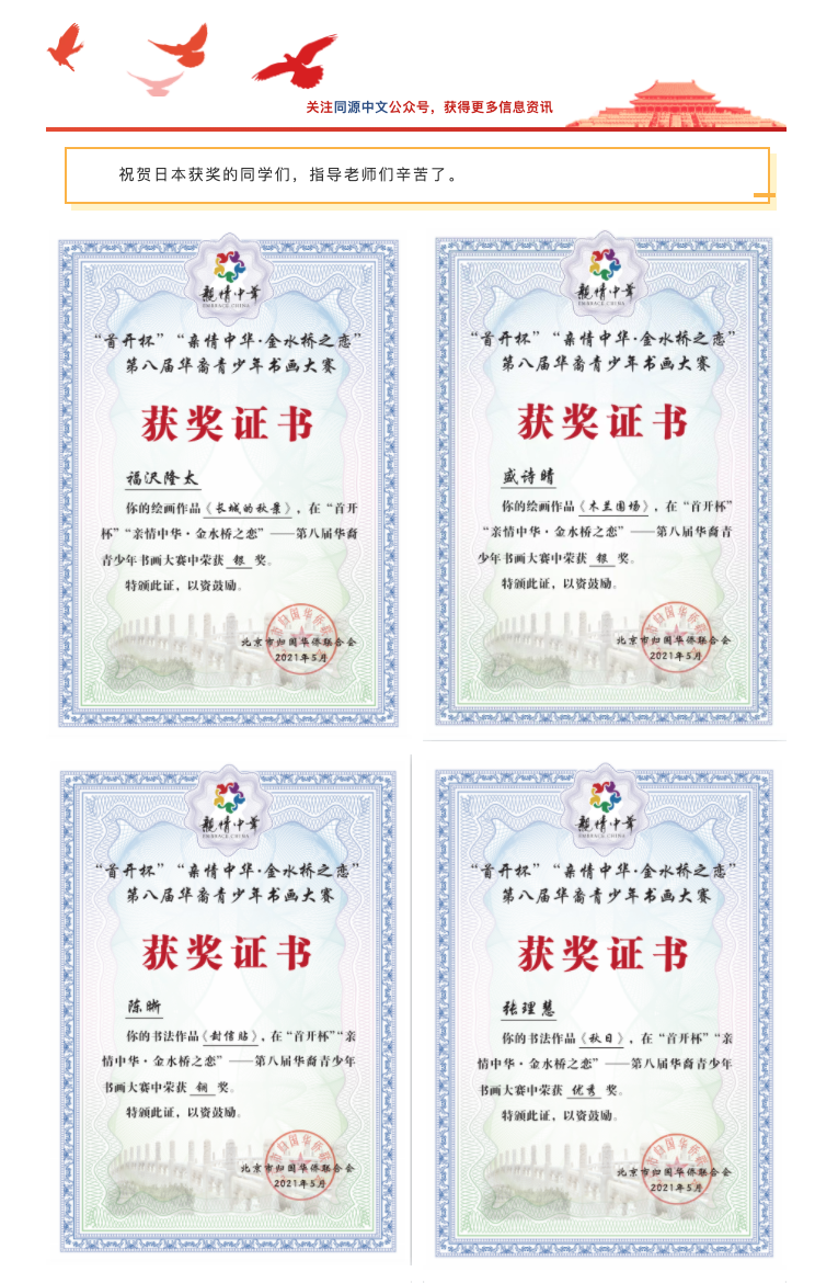 ●第八届“首开杯”亲情中华,金水桥之恋全球华裔青少年书画大赛 圆满落幕