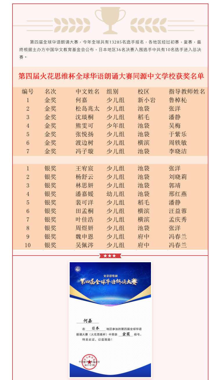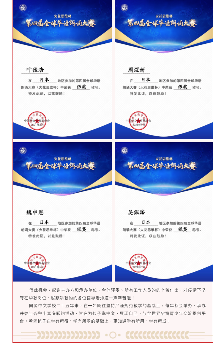 ●同源小选手们在第四届全球华语朗诵大赛上捷报频传