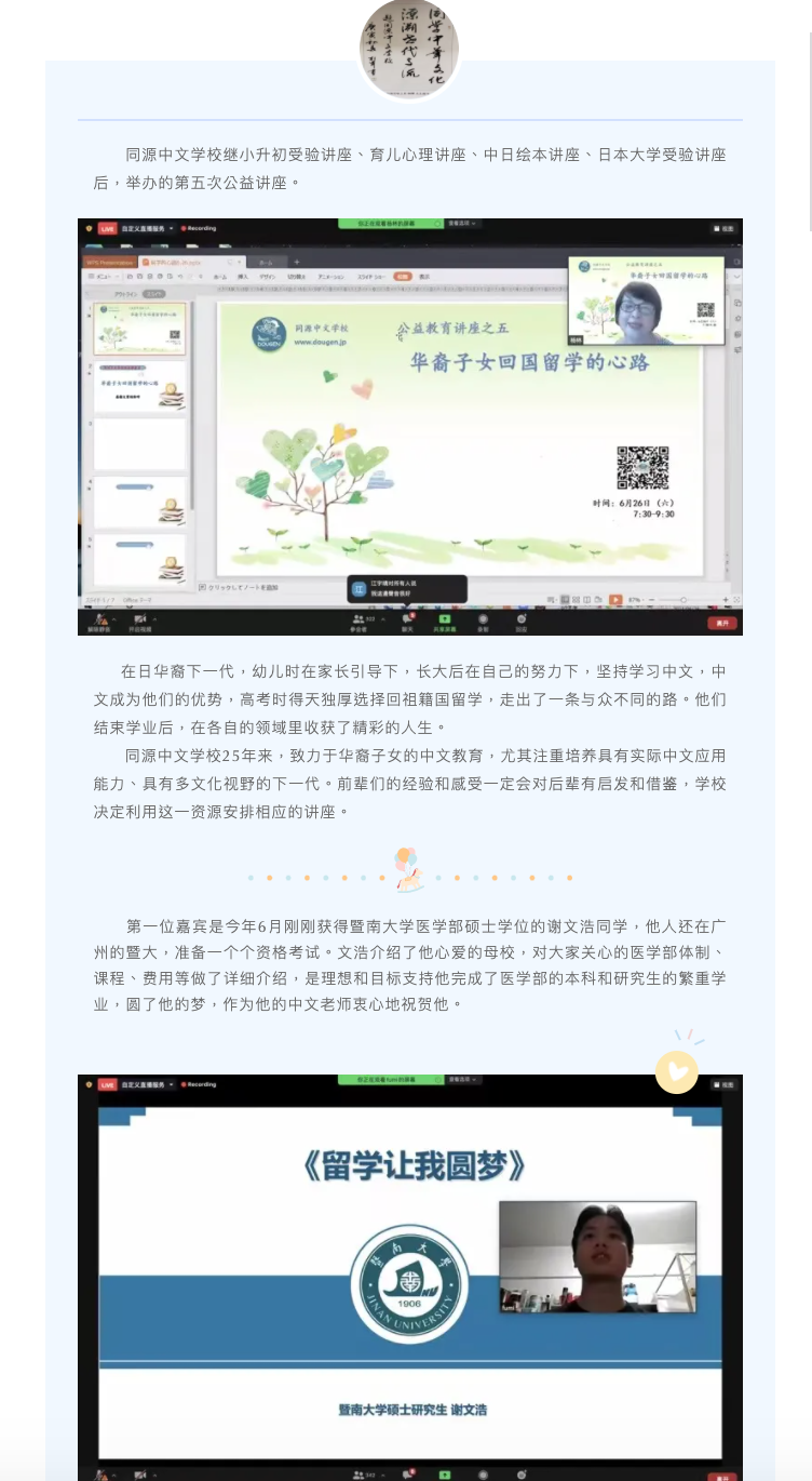 ●在日新华人二代回国留学的心路--同源中文学校第五次公益教育讲座