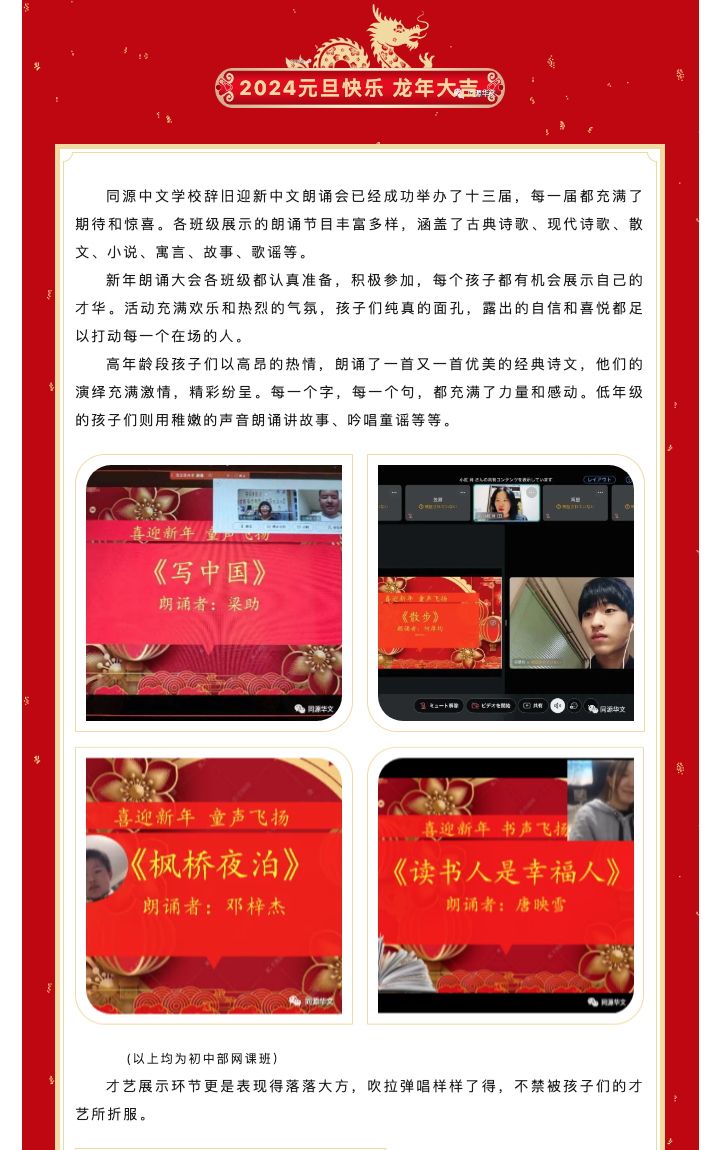 ● "岁末华诗,朗朗中文--年末中文朗诵盛宴"