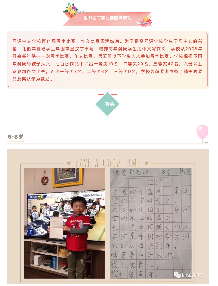 同源中文学校第11届写字比赛圆满成功